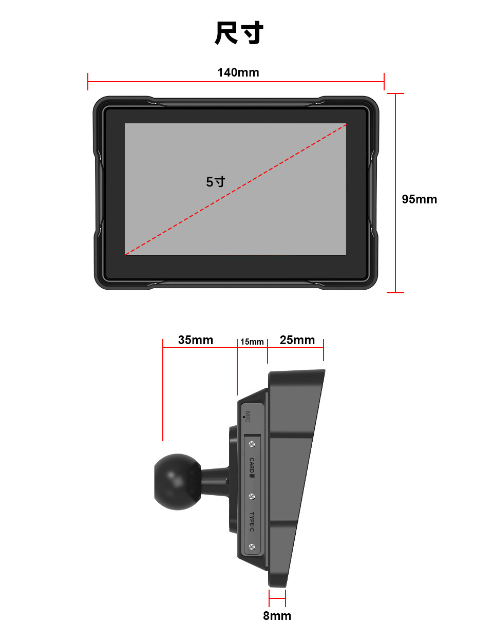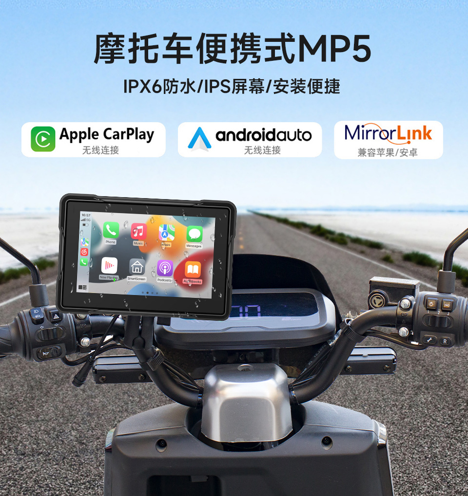 5-дюймовый мотоцикл навигации Mp5 HD портативный PND беспроводной Carplay/AUTO