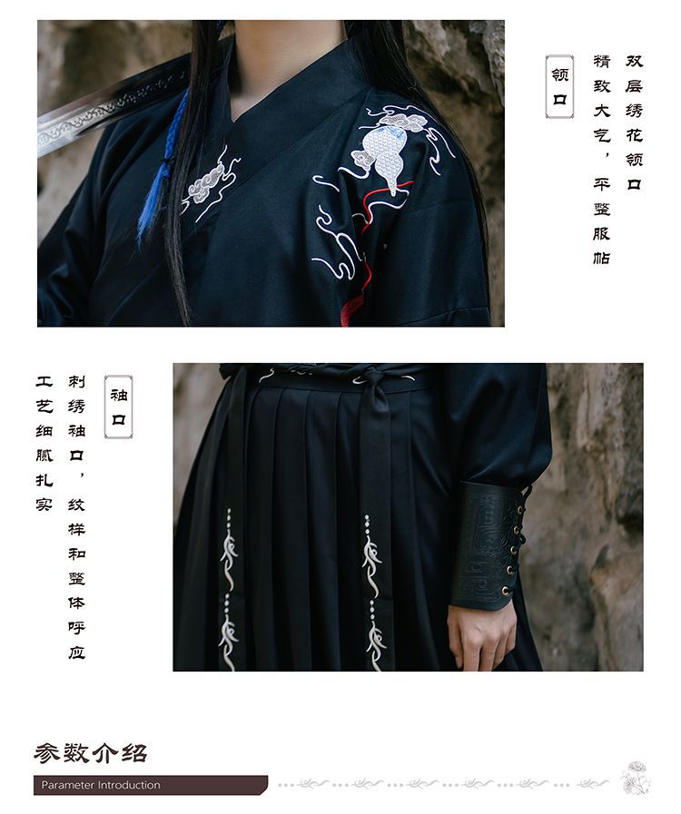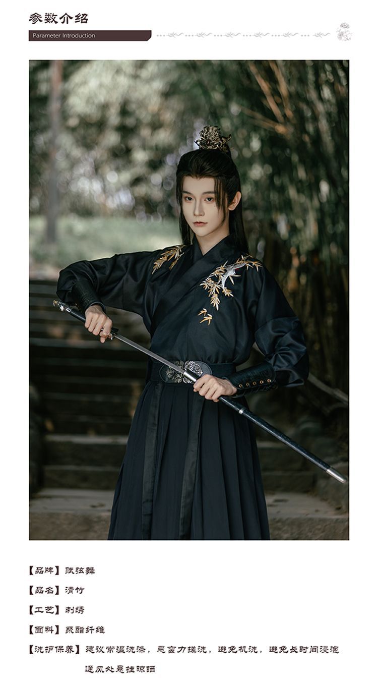 Hanfu мужская одежда черный стиль боевых искусств Вэй Цзинь