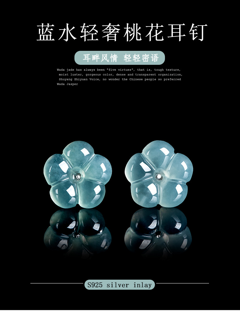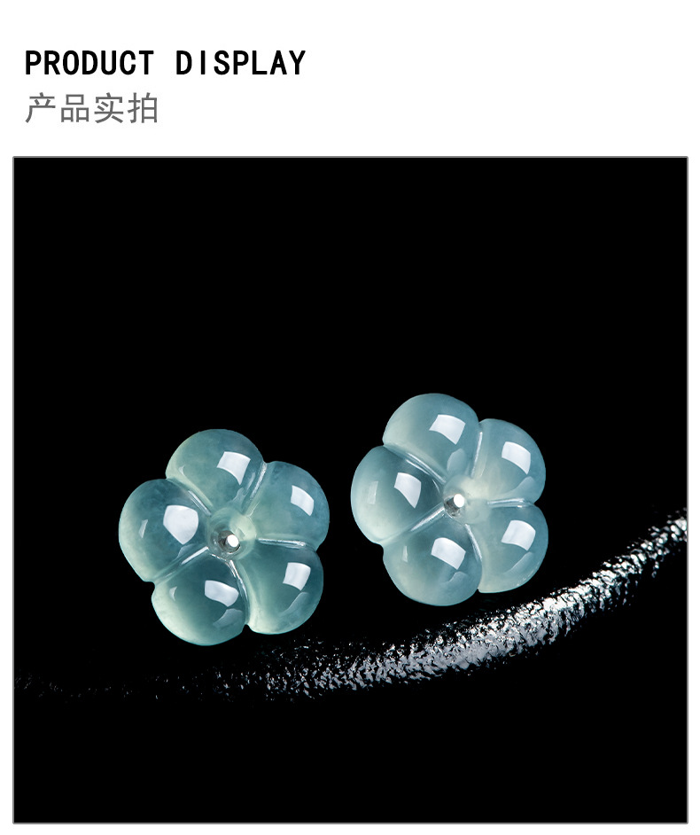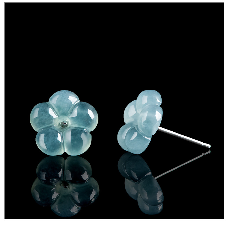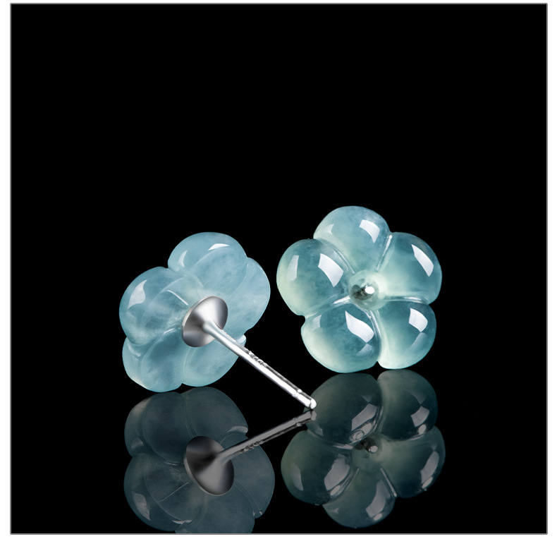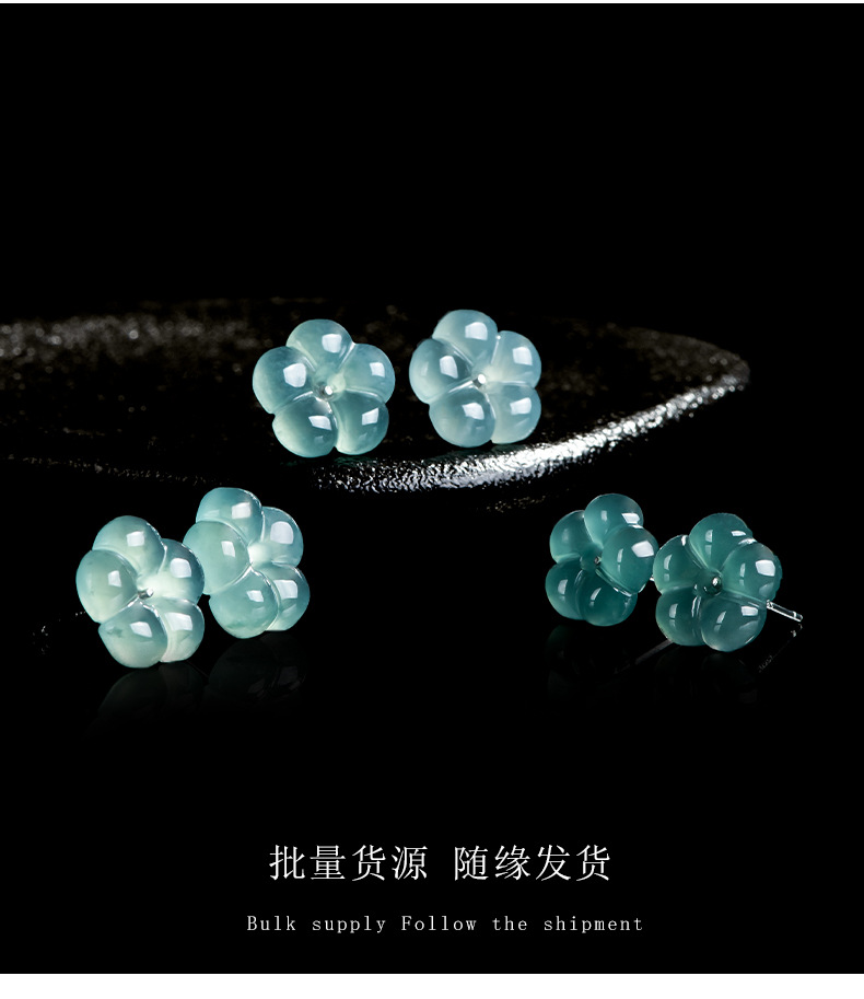 Натуральный товар Изумрудная голубая вода сливовая ушная гвоздь лед нефритовый камень лепестки S925 Серебряная инкрустированная древняя женская серьга оптом