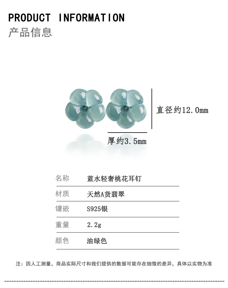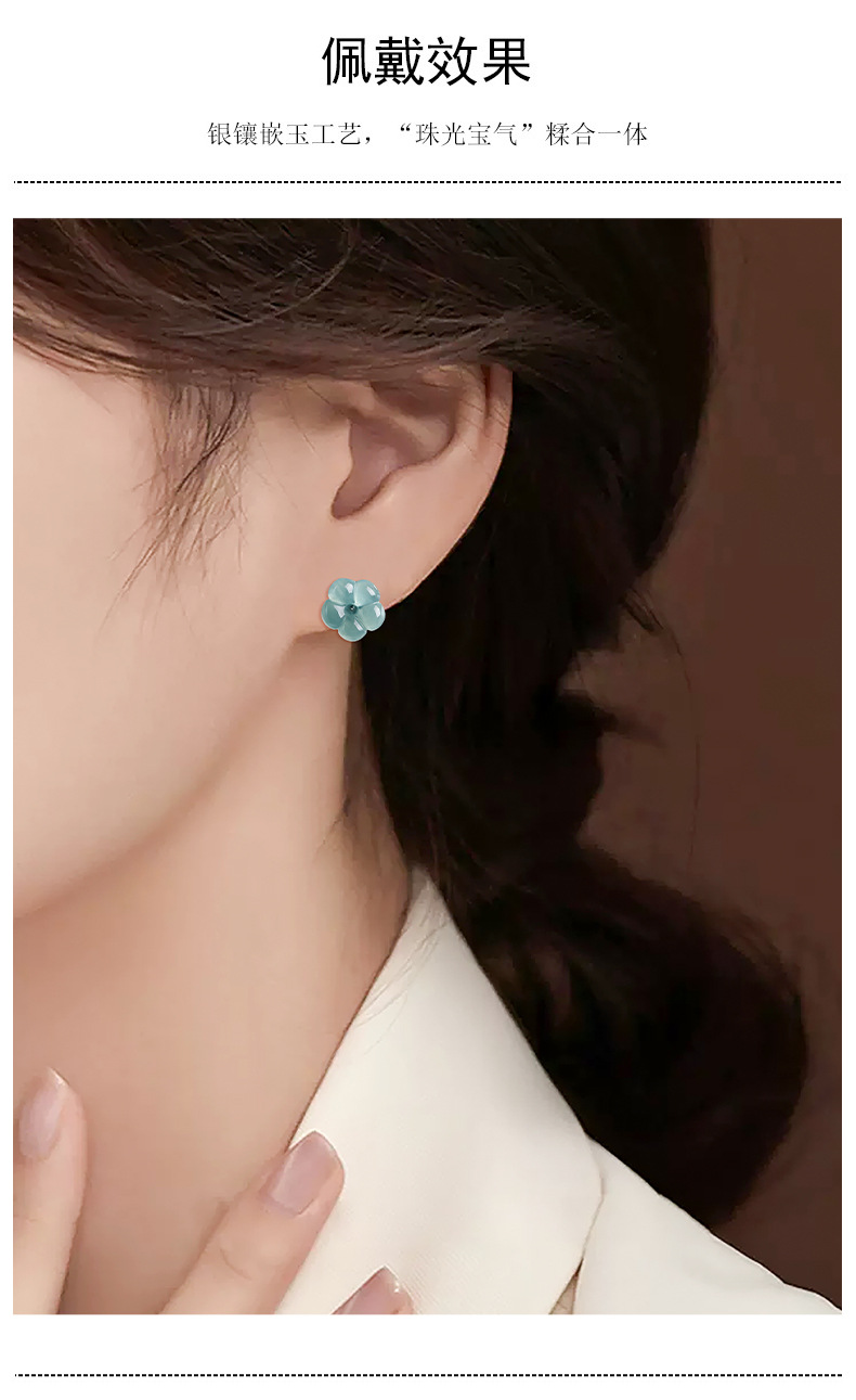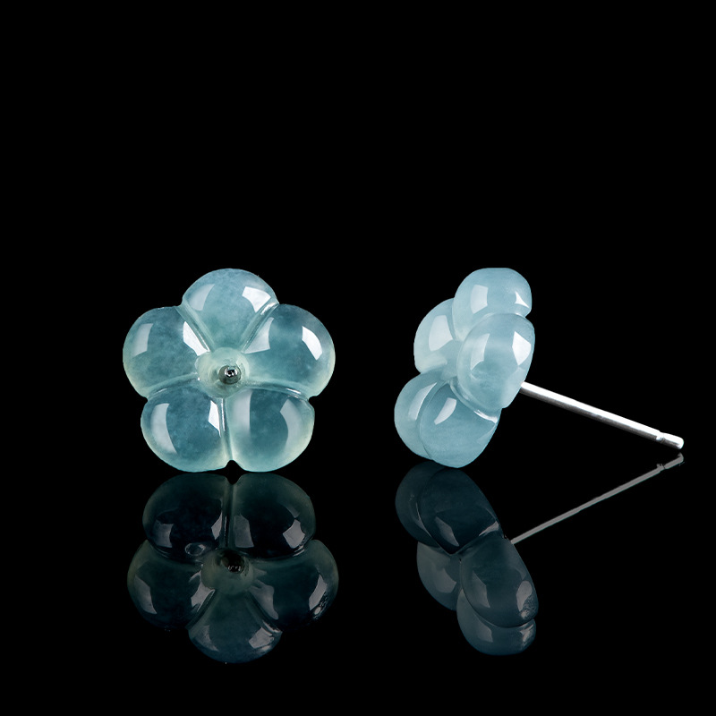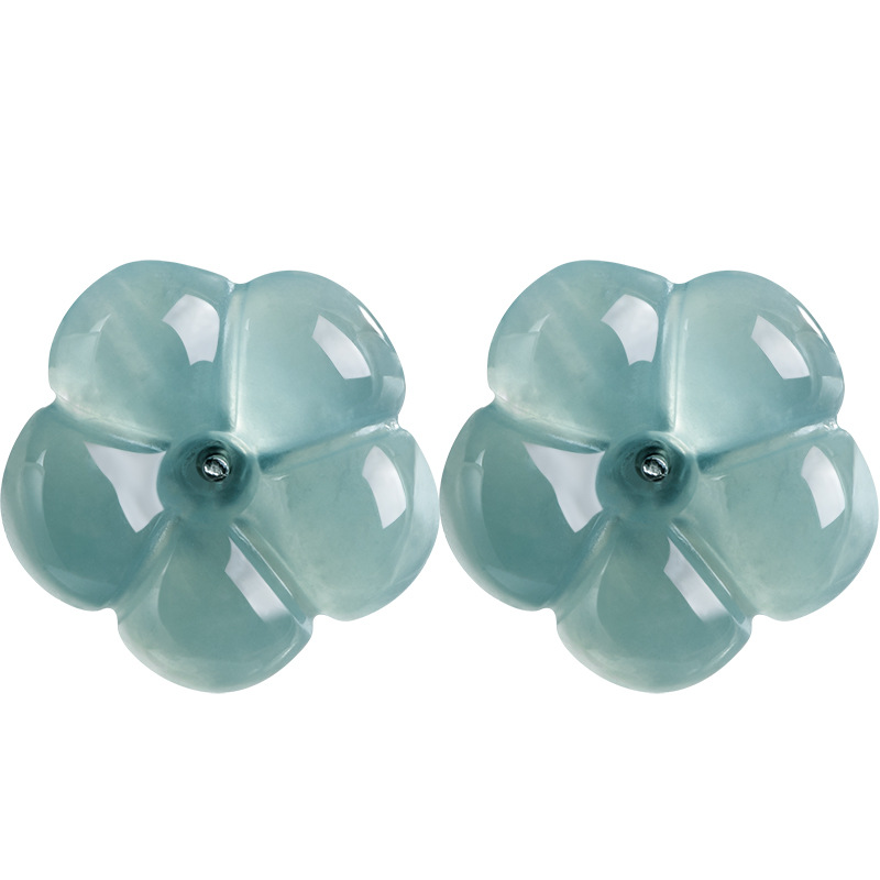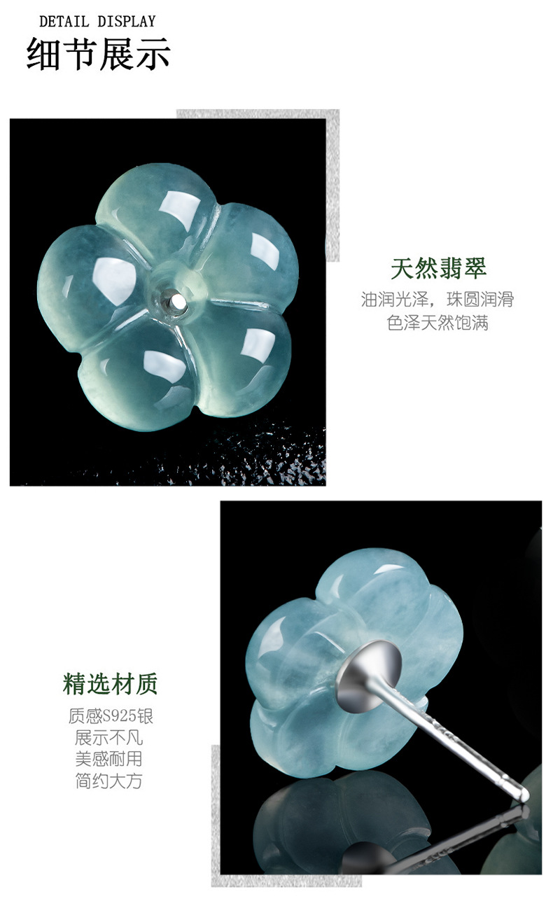 Натуральный товар Изумрудная голубая вода сливовая ушная гвоздь лед нефритовый камень лепестки S925 Серебряная инкрустированная древняя женская серьга оптом