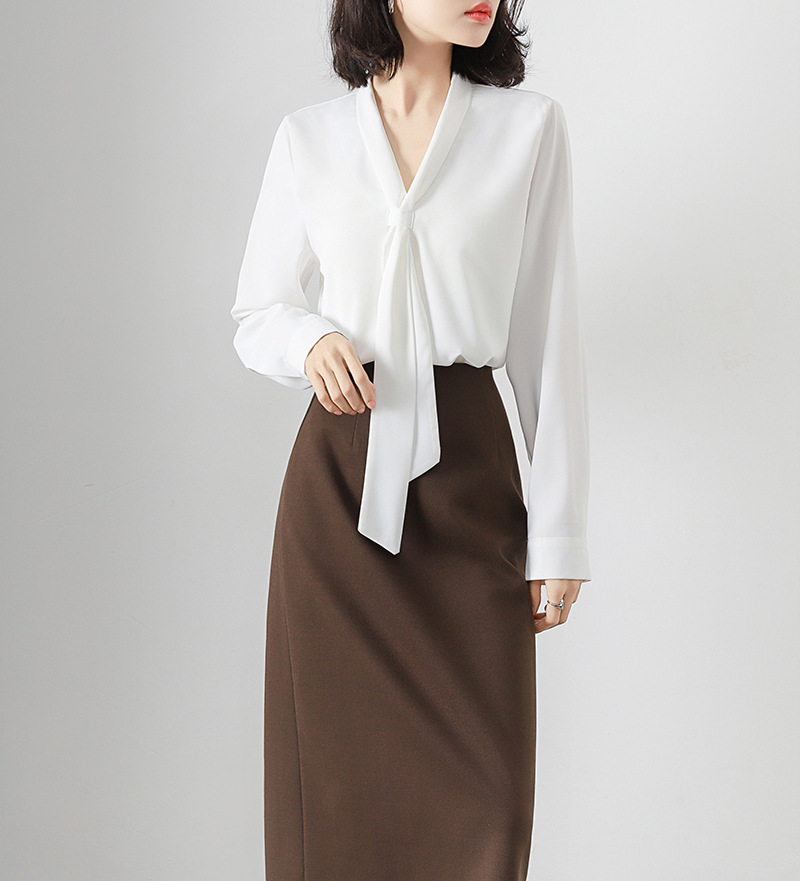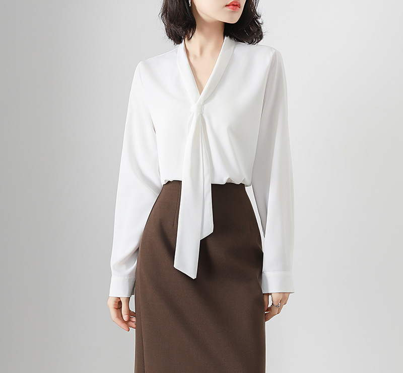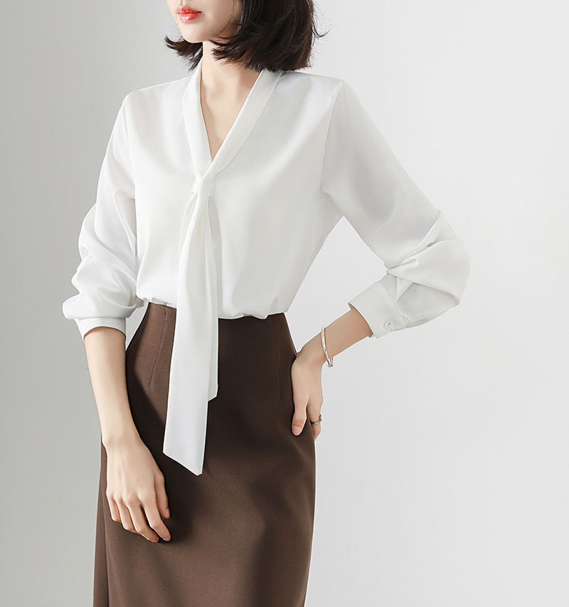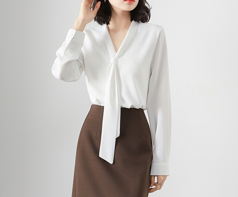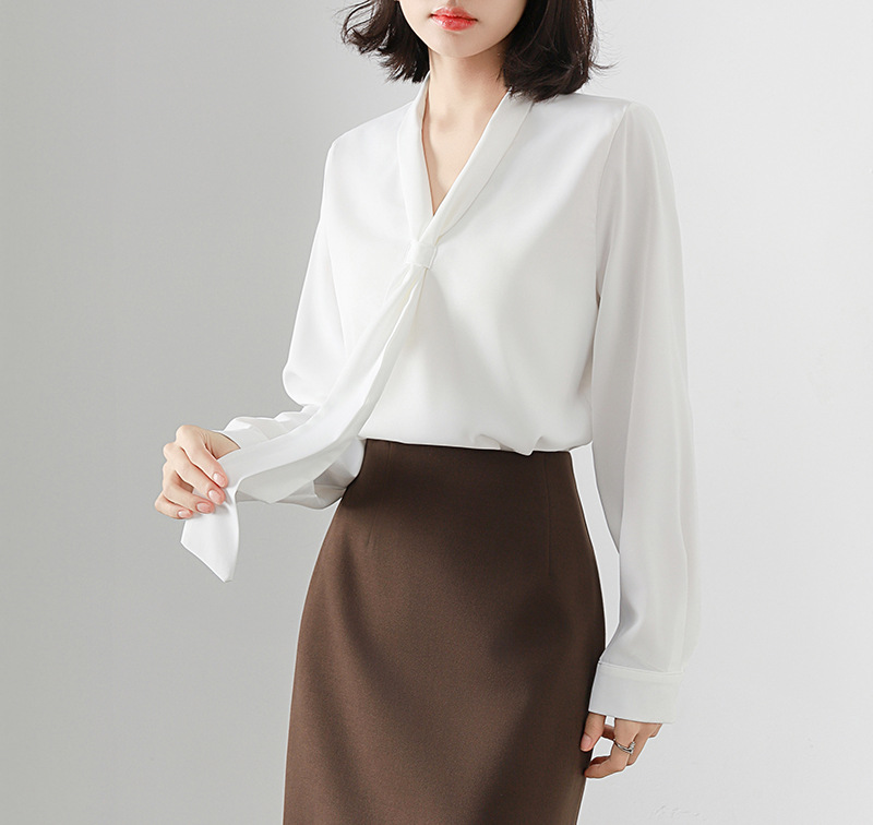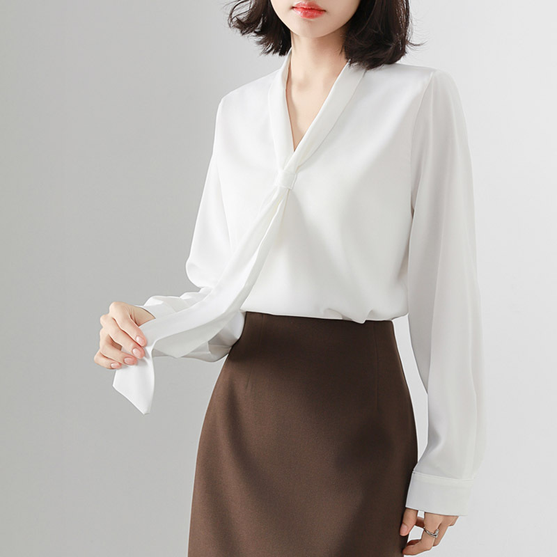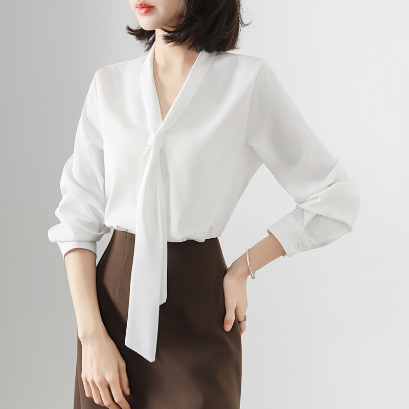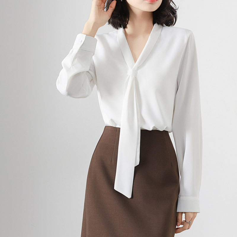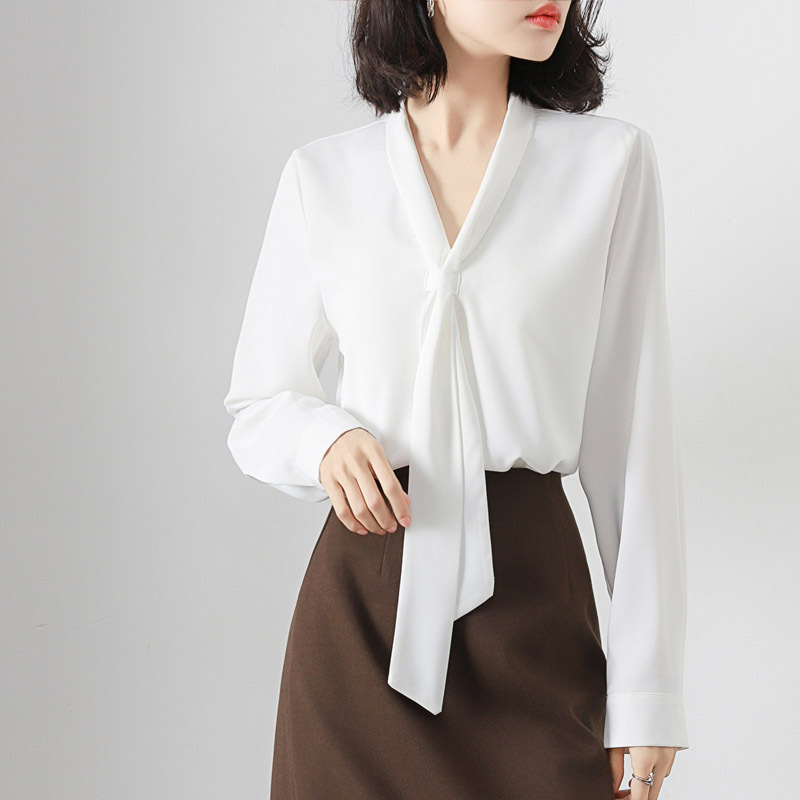 V-образный вырез с длинными рукавами белая рубашка женская весенняя и летняя поездка на работу