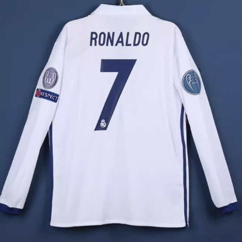1617 Реал Мадрид, домашний принт №7 РОНАЛДУ + значок Лиги чемпионов; 1617 Реал Мадрид, номер 7, РОНАЛДУ + значок Лиги чемпионов; 1213 Сантос, домашний номер 11, Неймар-младший; 0910AC домашний длинный рукав с принтом № 80 РОНАЛДИНО + значок Лиги чемпионов; 0910AC домашний длинный рукав с принтом № 32 BECKHAM; 0910AC домашний длинный рукав с принтом № 8 GATTUSO; 0809 Барселона домашняя футболка с длинными рукавами и принтом №14 HENRY + значок Лиги чемпионов; 0809 Барселона, домашняя футболка с длинными рукавами и номером 10 МЕССИ + значком Лиги чемпионов; 0708 Домашняя футболка Манчестер Юнайтед с длинными рукавами и номером 7 РОНАЛДУ + значком Премьер-лиги; 0708 Домашняя футболка Манчестер Юнайтед с длинными рукавами и номером 7 РОНАЛДУ + значком Лиги чемпионов; 0607 Реал Мадрид домашний длинный рукав №9 РОНАЛДУ; 0607 Реал Мадрид, длинные рукава с принтом №23 БЕКХАМ; 0506 Барселона с домашним принтом №10 с длинным рукавом РОНАЛДИНИО + нашивка Лиги чемпионов; 0103 Lisbon Lord с длинным рукавом и принтом № 28 C.RONALDO; 0708 Манчестер Юнайтед, выездная форма с длинным рукавом, принт №7 РОНАЛДУ + эмблема Лиги чемпионов; 0708 Манчестер Юнайтед, выездная футболка с длинным рукавом, принт №7 РОНАЛДУ + эмблема Премьер-Лиги