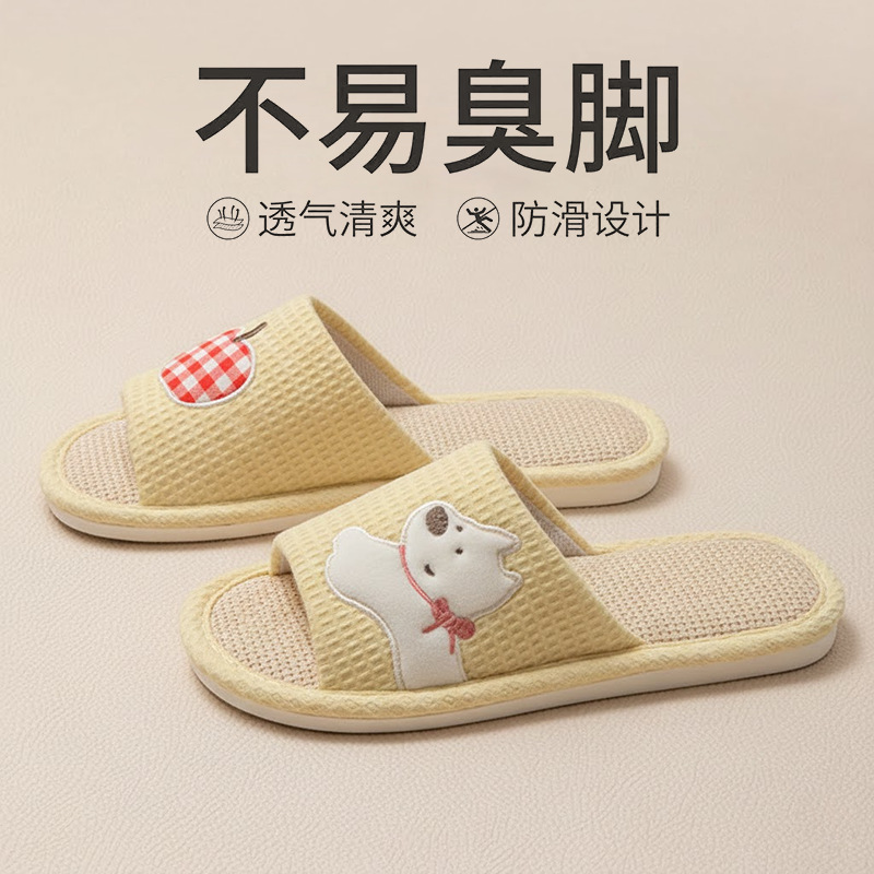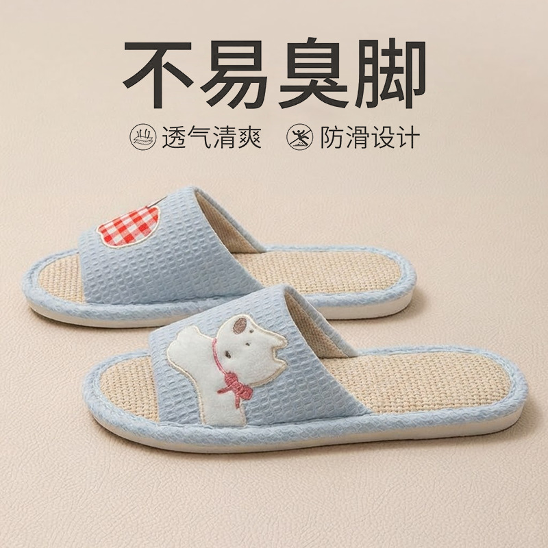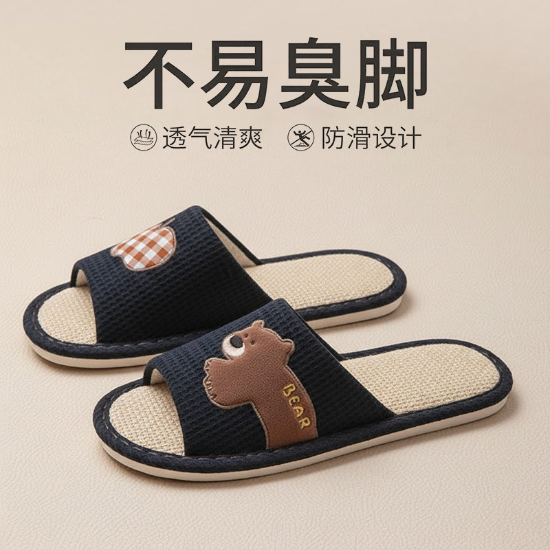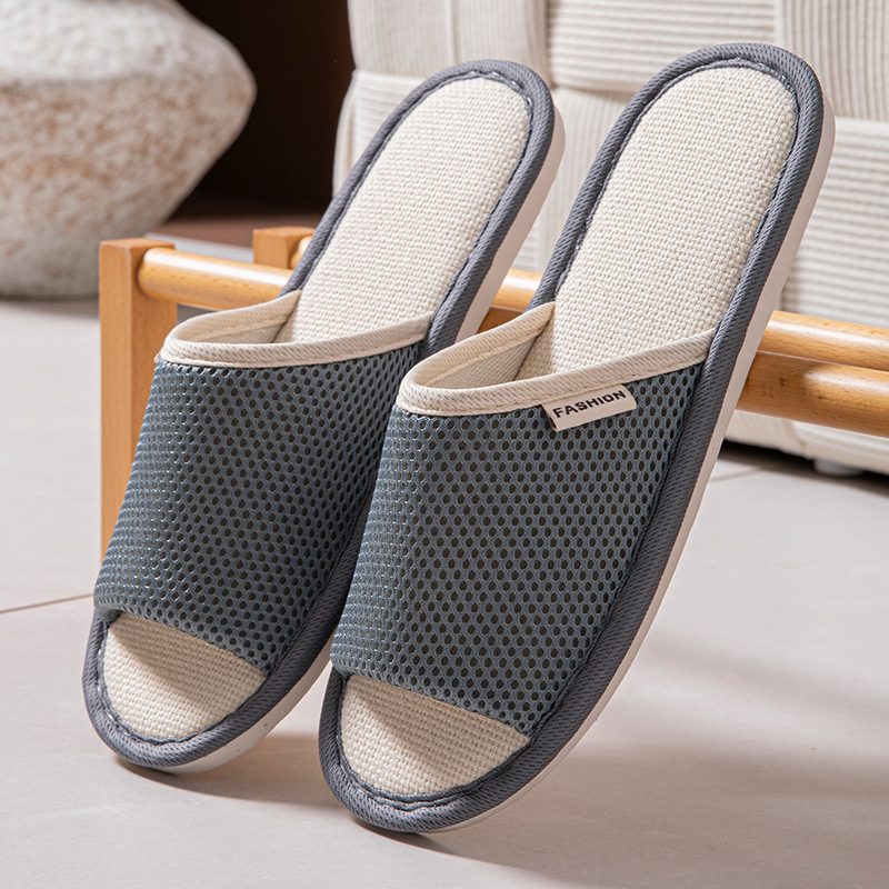 Льняные тапочки для мужчин, дышащие домашние, нескользящая мягкая подошва, бесшумная впитывающая пот хлопчатобумажная и льняная обувь для женщин весенне-осеннего сезона.