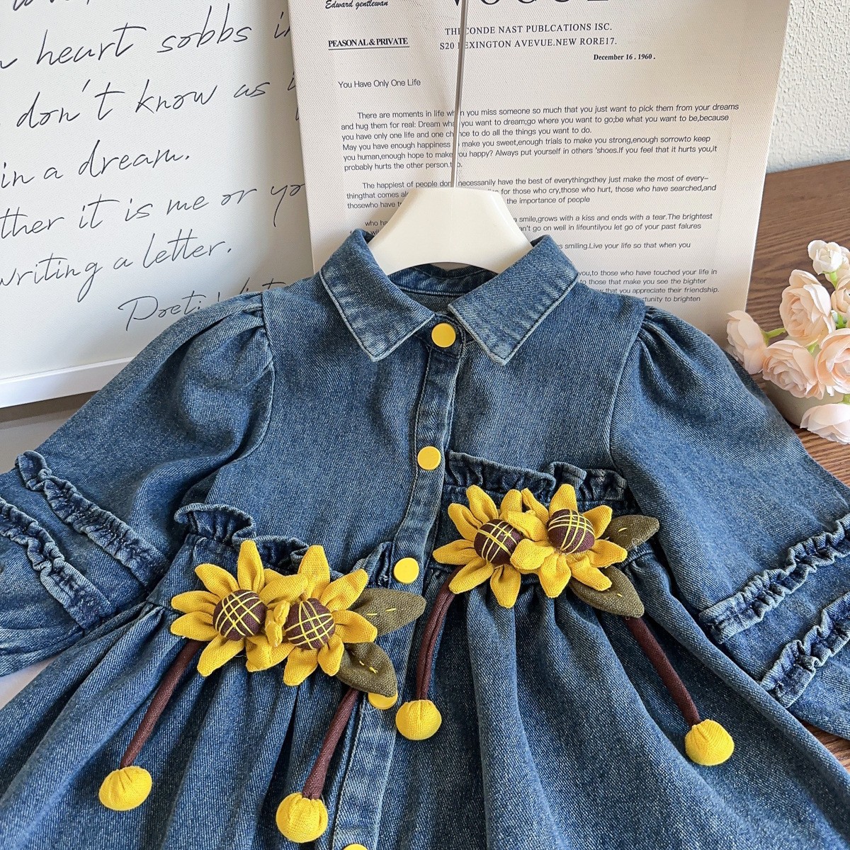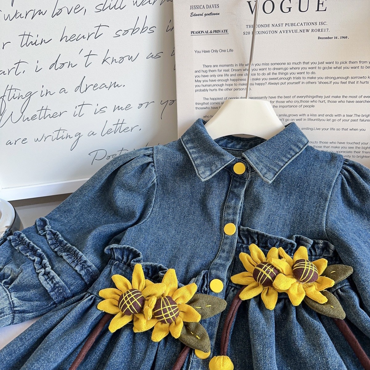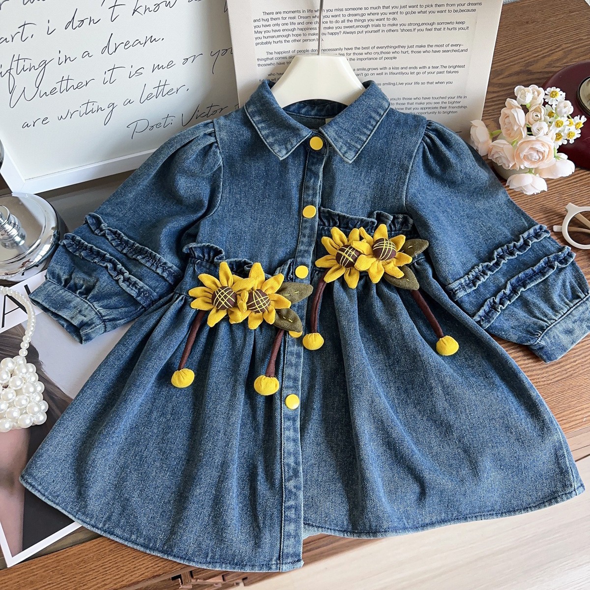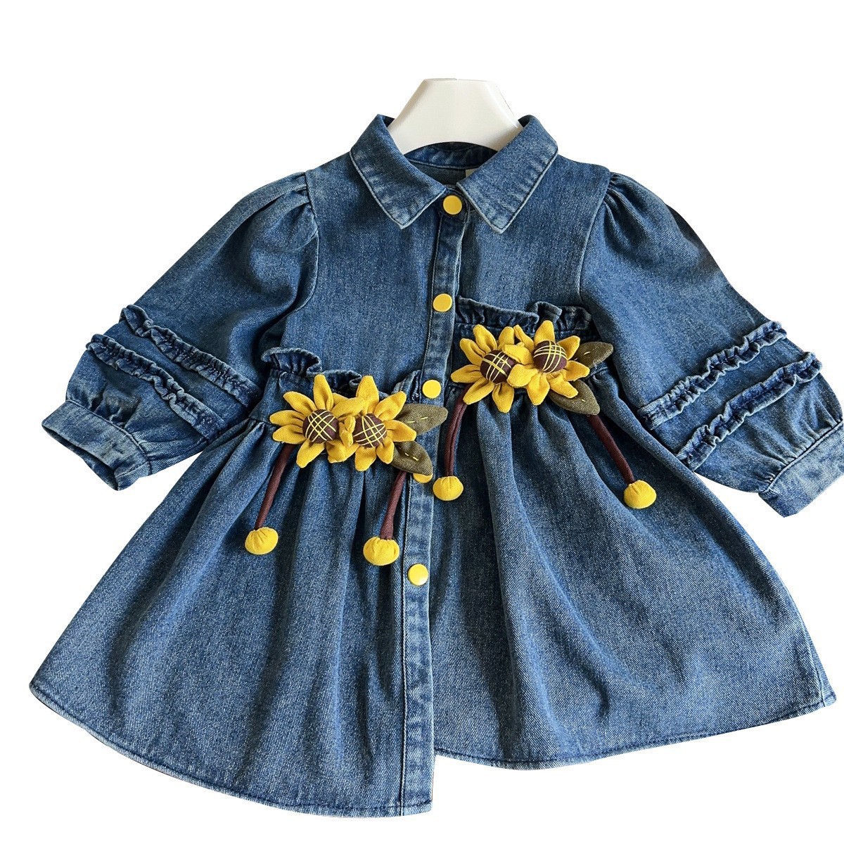 Детские топы в стиле принцессы, ветровка и джинсовая юбка для девочек, весна-осень 2025, с принтом подсолнухов