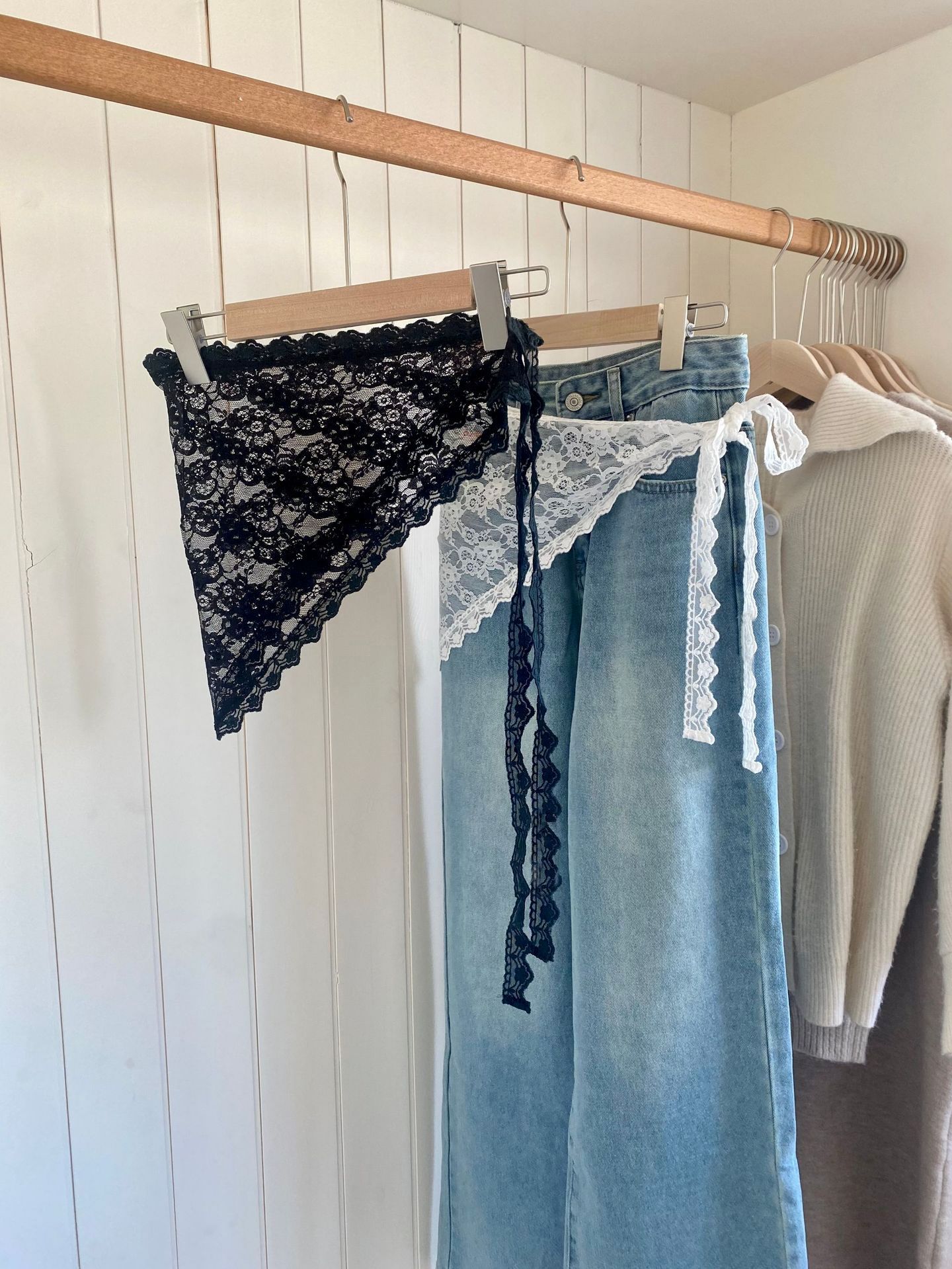 2025 Новый кружевной кружевной треугольный шарф пердеть занавес индивидуальность мода ремешок юбка длинные брюки