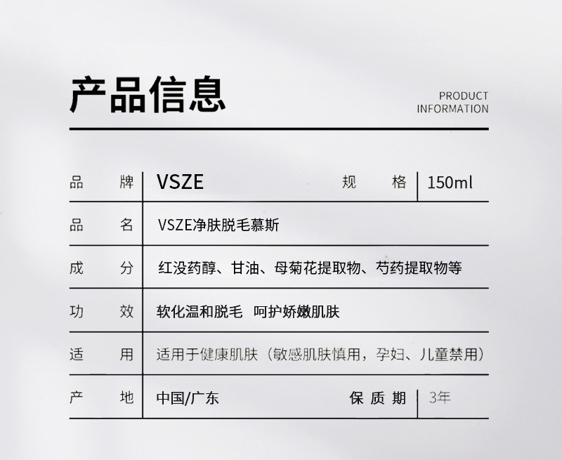 VSZE Очищающий мусс для удаления волос можно использовать для удаления волос по всему телу, мягкий и чистый, не оставляя черного, безболезненного и гладкого