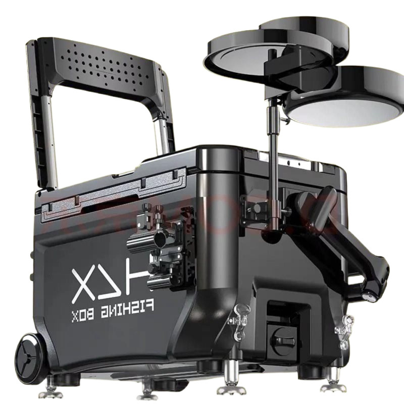 Рыболовный ящик Поднят рыболовный ящик для обработки взрывных устройств. Комплекс рыболовных удочек. Рыболовный зонт.