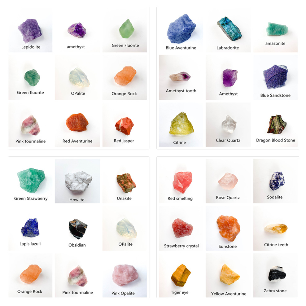 белый кристалл, грубый камень; камень белой сосны; пятнистый необработанный камень; Грубый камень зебры; Цветной флюоритовый камень; Крупный камень клубничного кристалла; Оранжевый соляной камень; Протеиновый камень (искусственный); Розовый опаловый необработанный камень; Розовый кварц, грубый камень; черный турмалин, грубый камень; обсидиановый необработанный камень; красная яшма, необработанный камень; красный корунд, необработанный камень; Красный и зеленый драгоценный камень; Необработанный камень Тигровый глаз; Цветок зеленый грубый камень; Грубый камень цитрин; пламенный камень, необработанный камень; удлиненный необработанный камень; грубый камень синего фосфора; грубый камень с синими прожилками; Кровь Дракона Руда; Зеленый клубничный камень; Зеленый авантюрин, необработанный камень; Зеленый флюоритовый камень; Фэнтезийный аметистовый необработанный камень; грубый камень лазурита; Солнечный камень; Тяньхэ грубый камень; Синий необработанный камень Тяньшань; грубый камень в лунном свете; Грубый камень фиолетовой слюды; Angora белый кристалл грубый камень; A Sai белый кристаллический грубый камень; смешанные необработанные камни