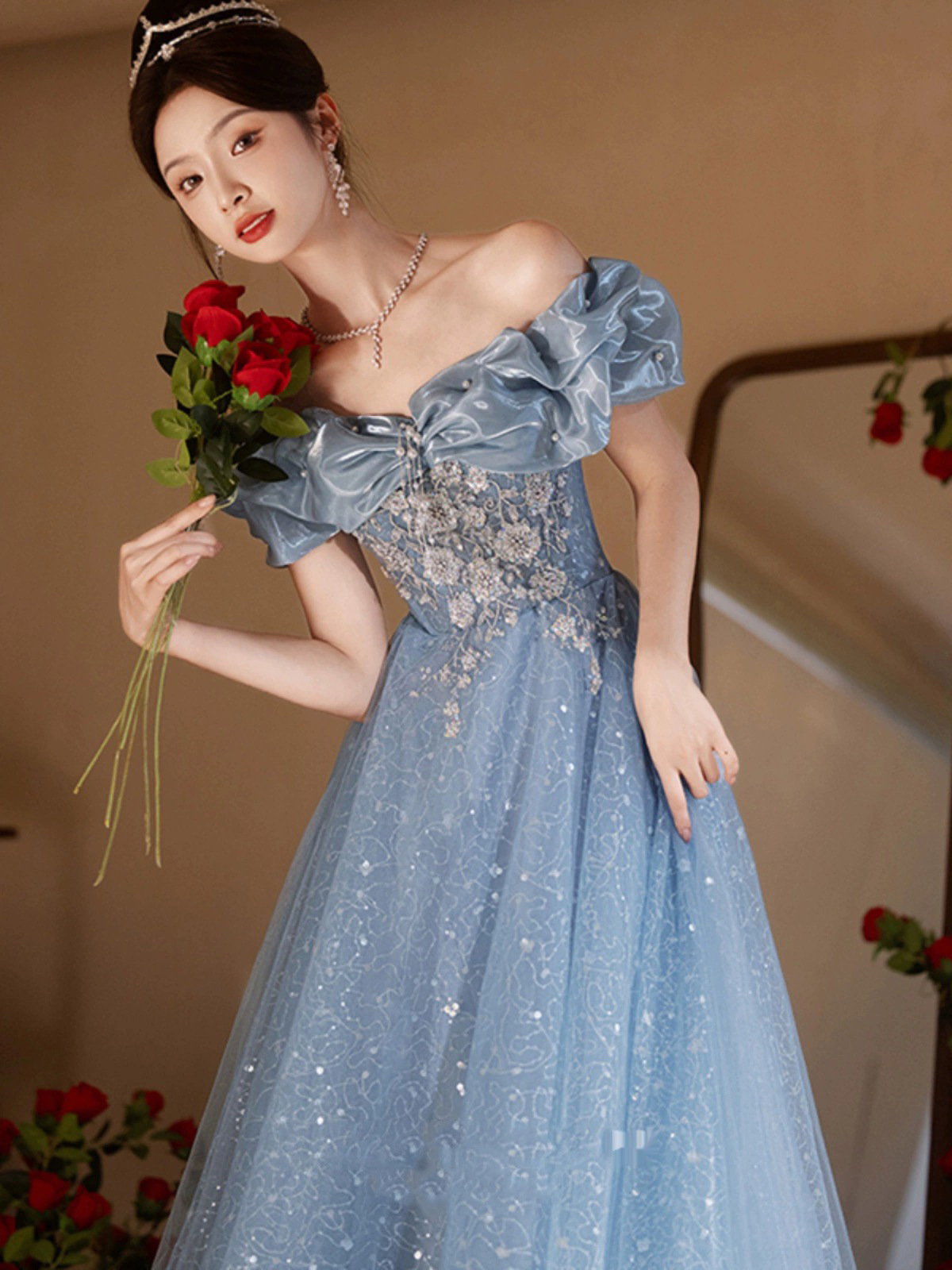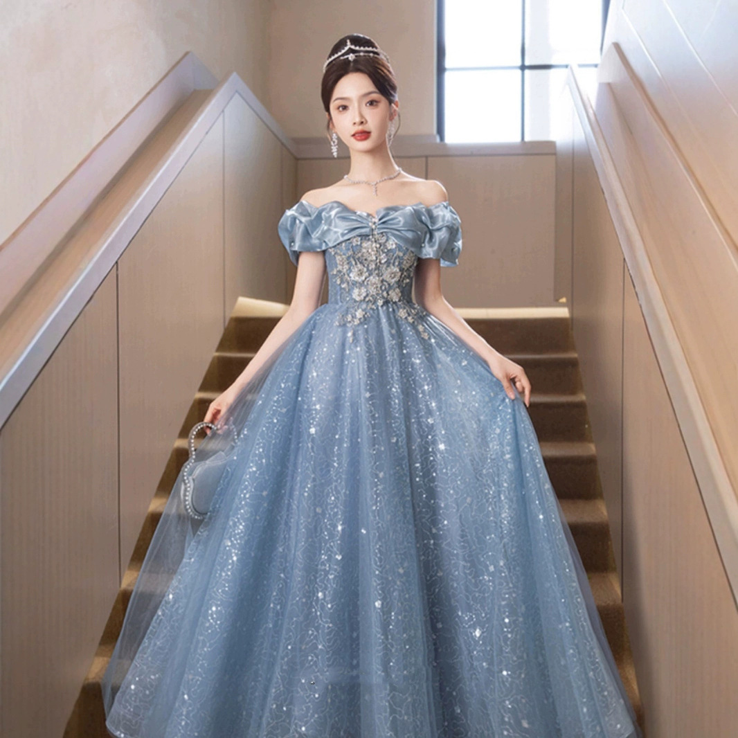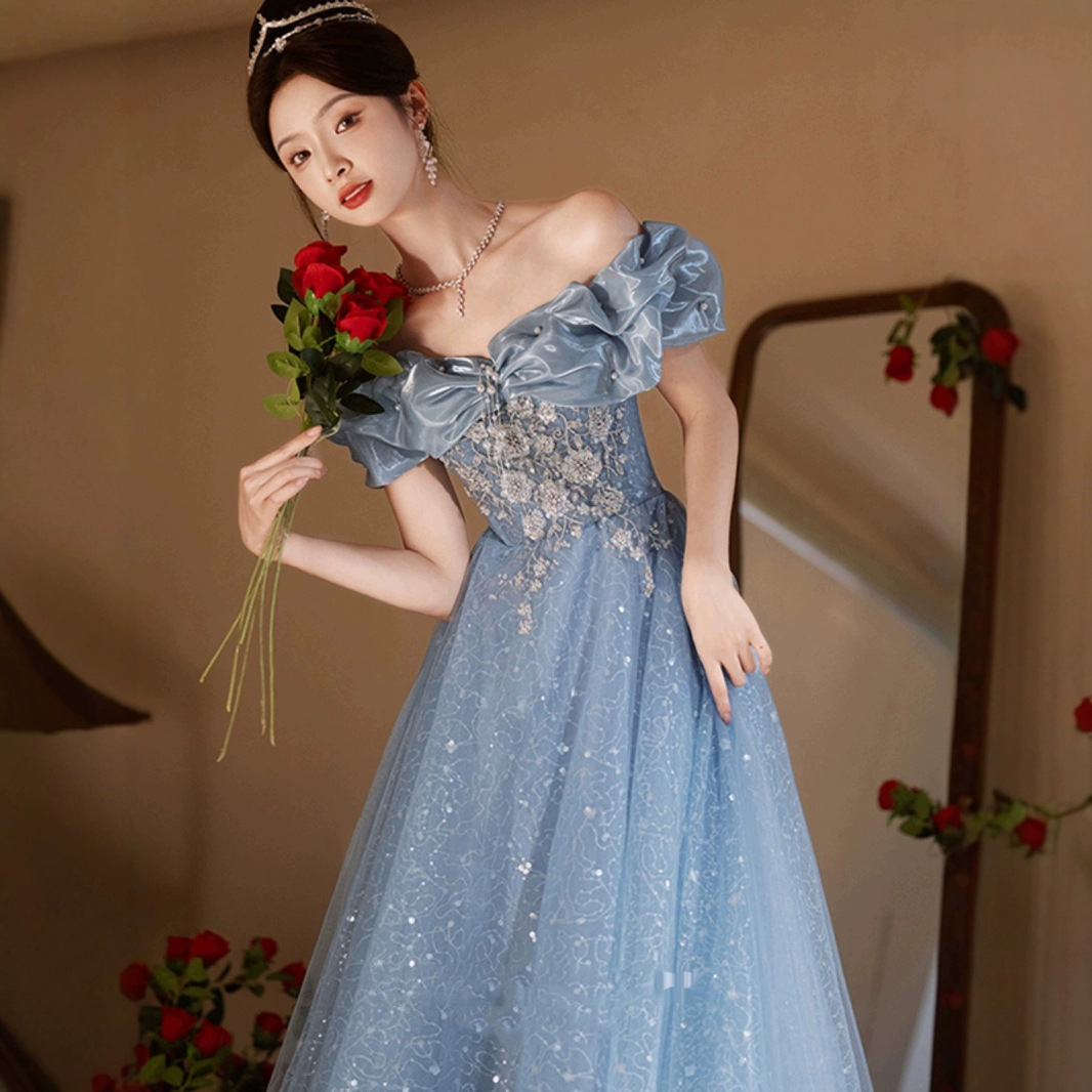 Синее вечернее платье на одно плечо, новинка 2026 года, элитный стиль, изысканное, легкое, роскошное, нишевое, для ведущих женщин