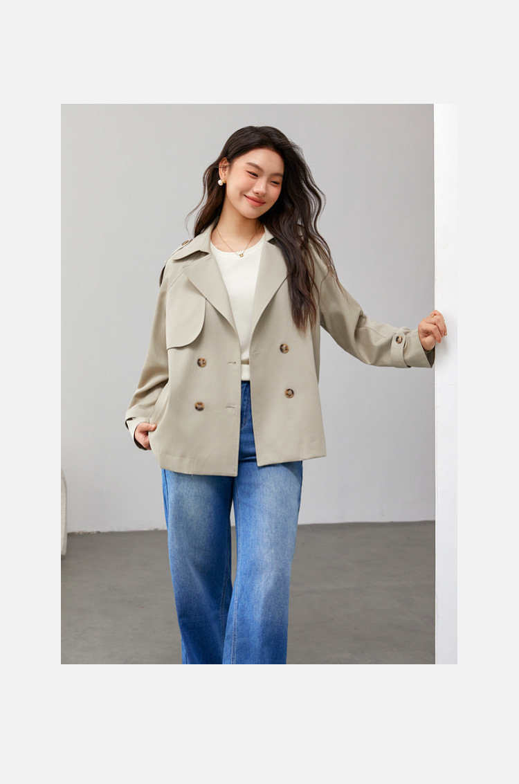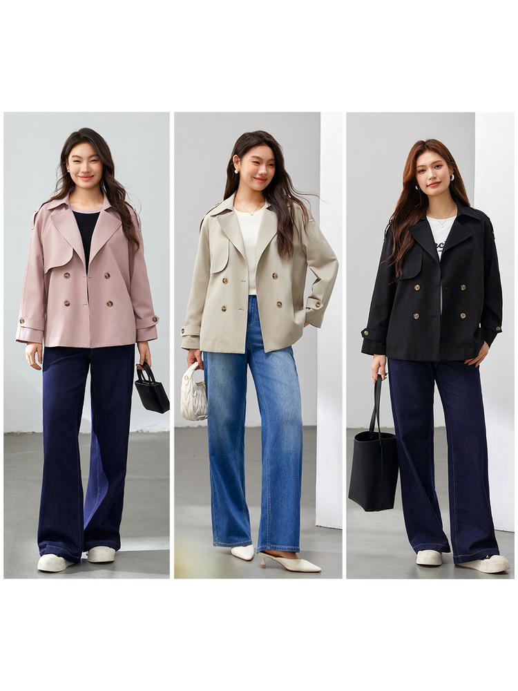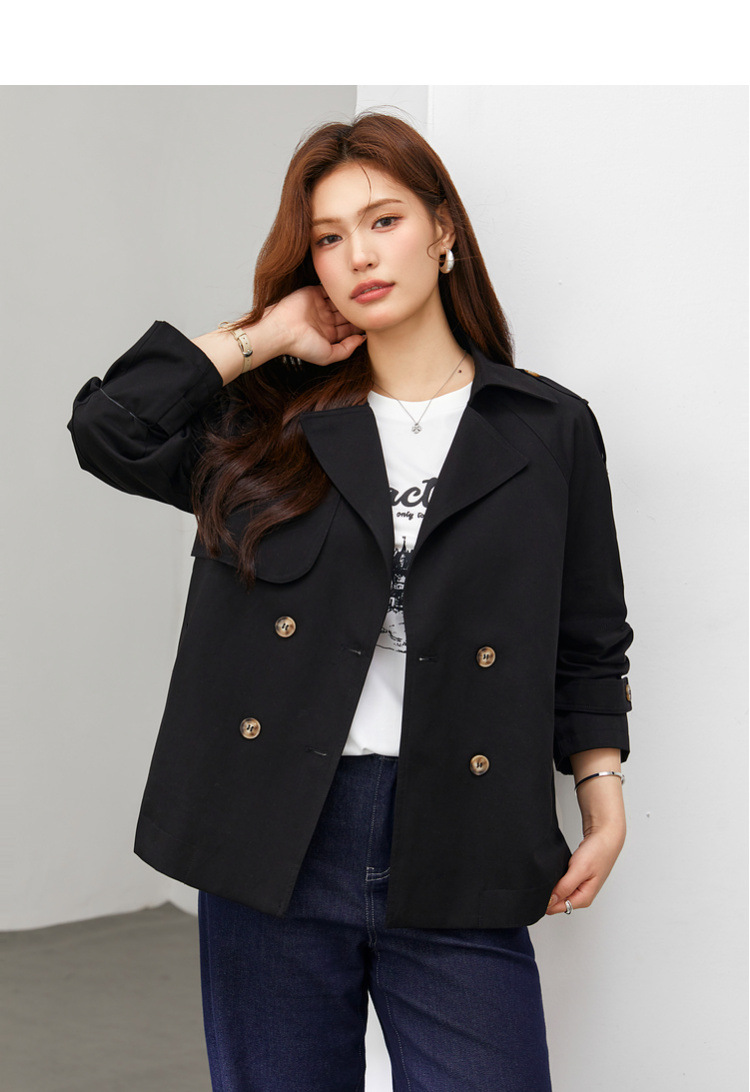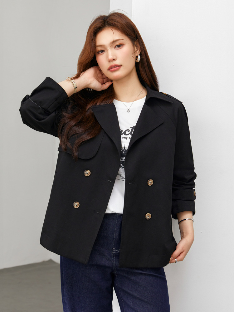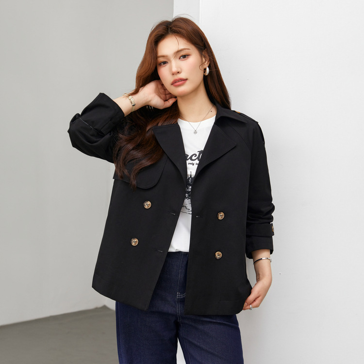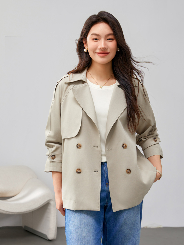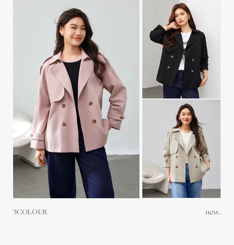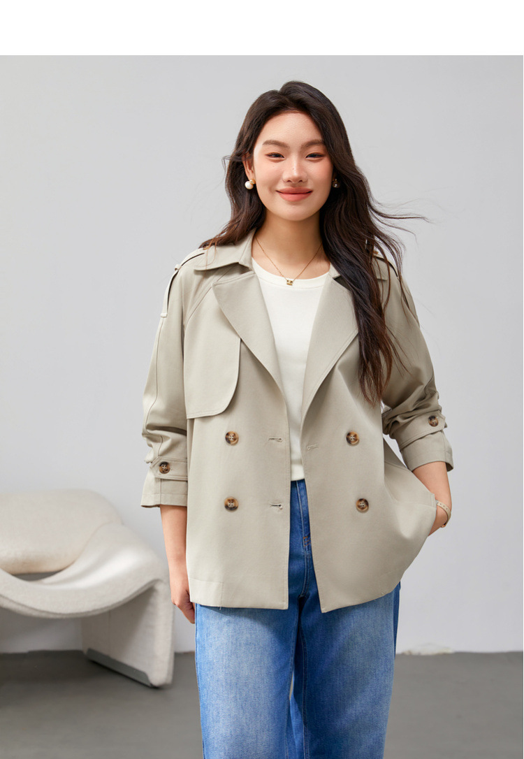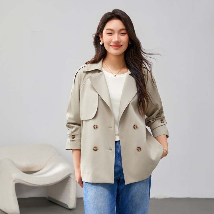 [Лезель хлопок твил короткий темпераментный плащ] Плоский большой размер женский толстый mm2025 весенний новый