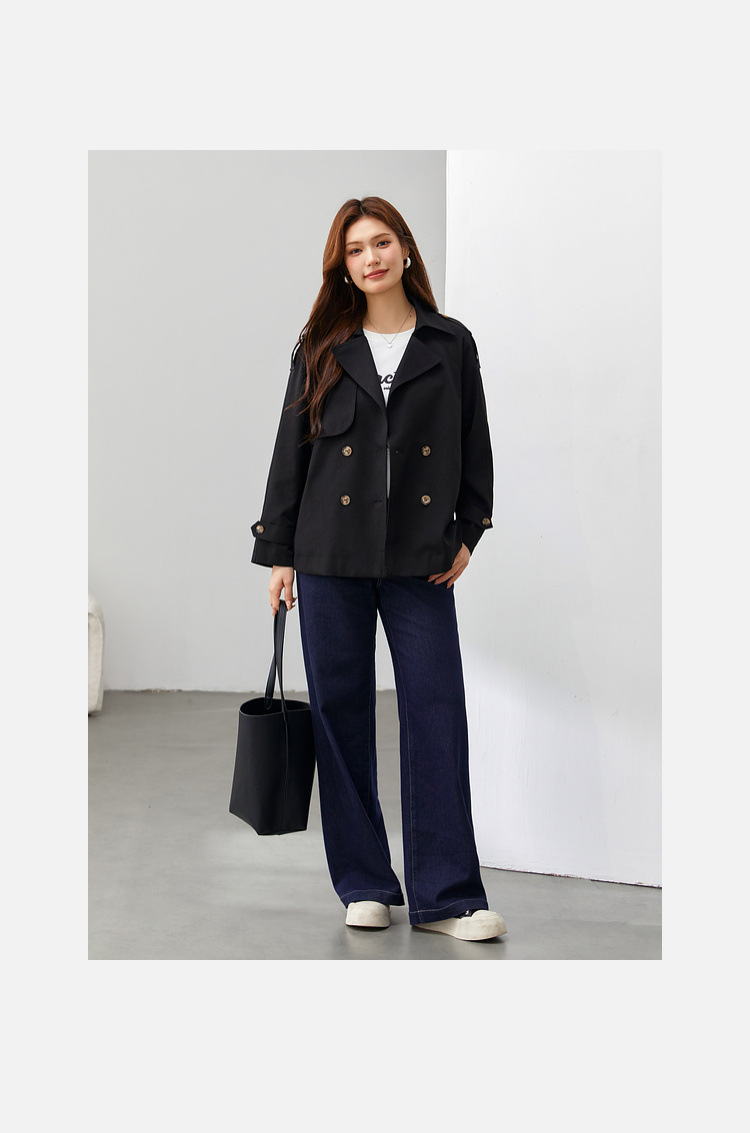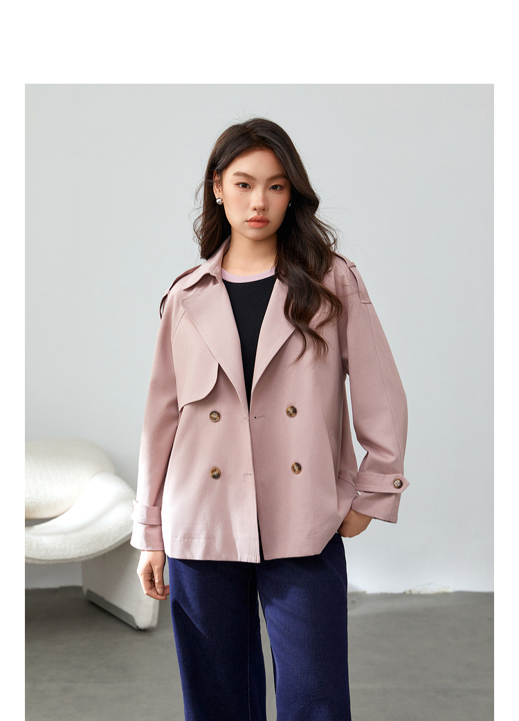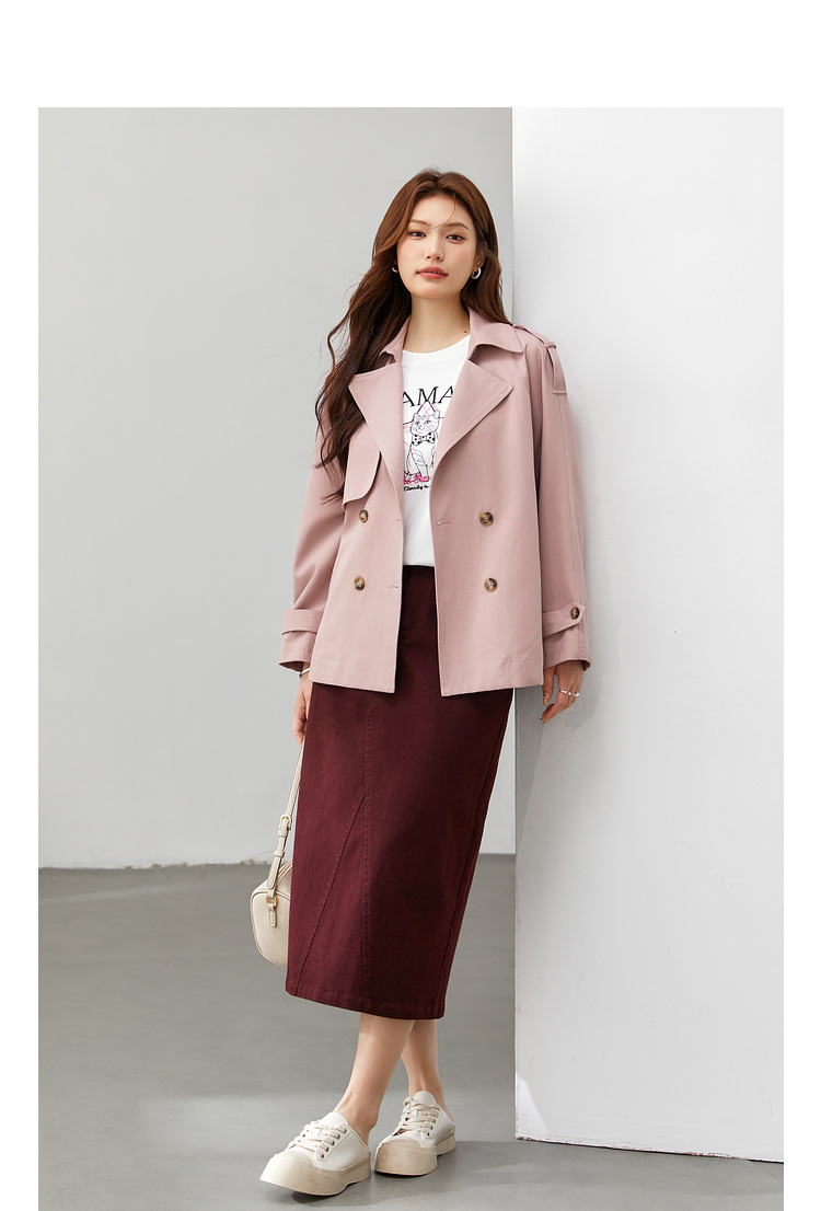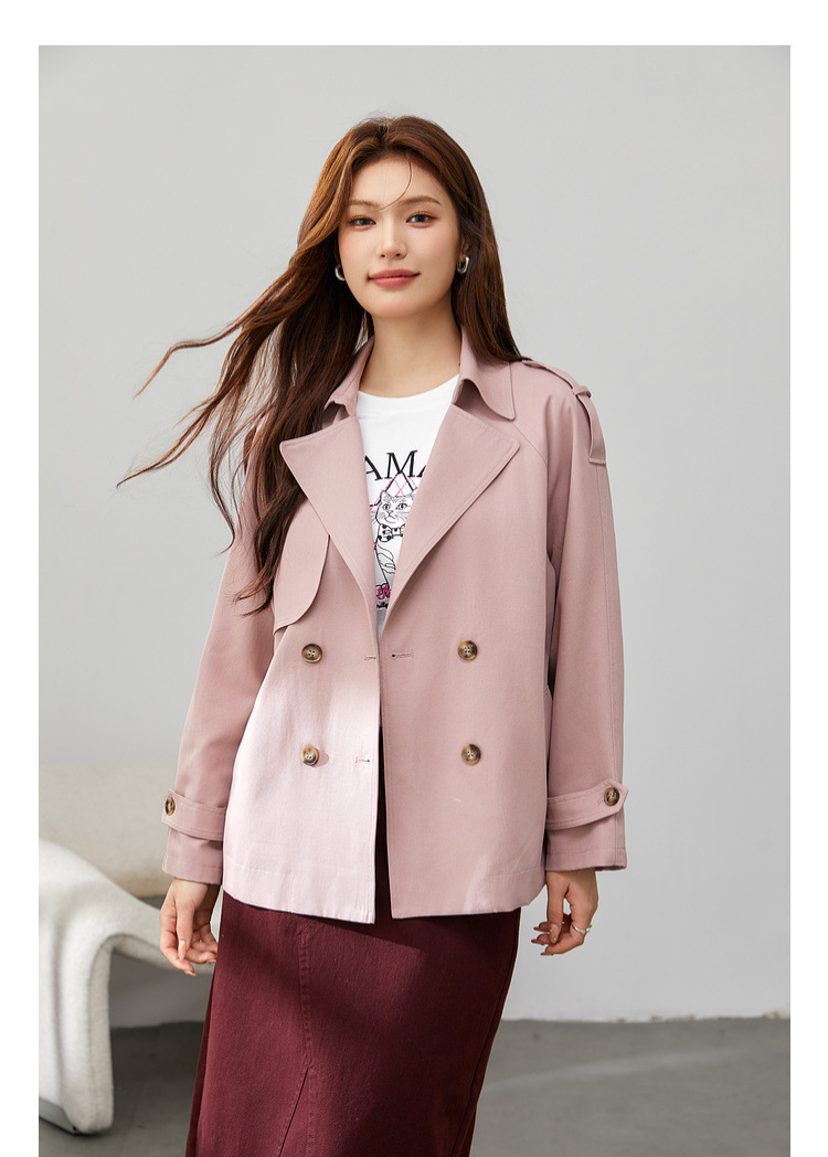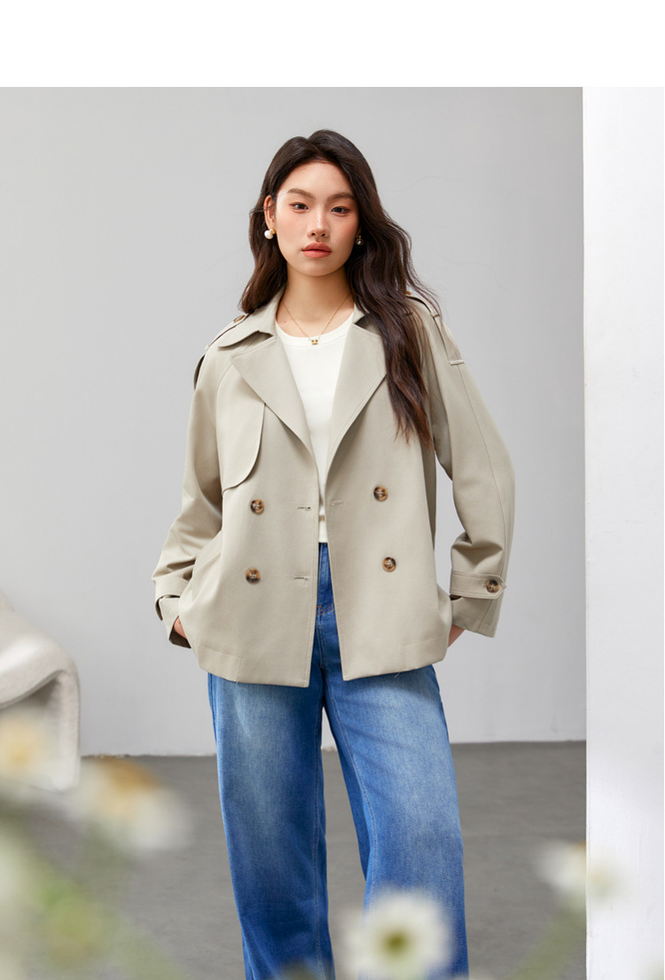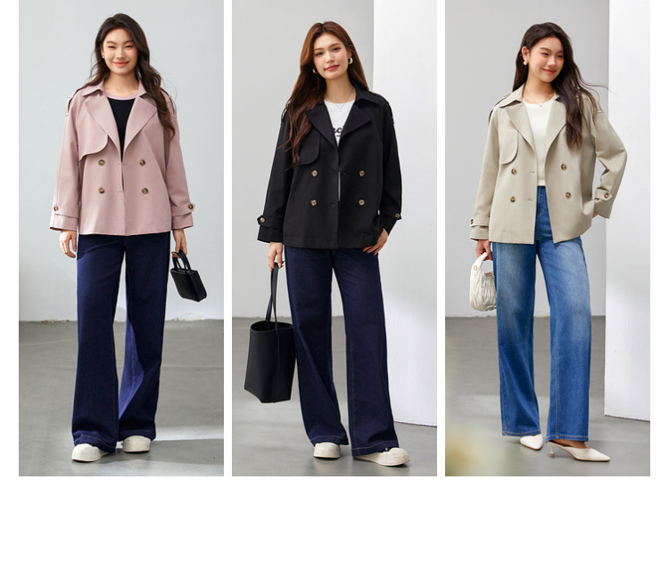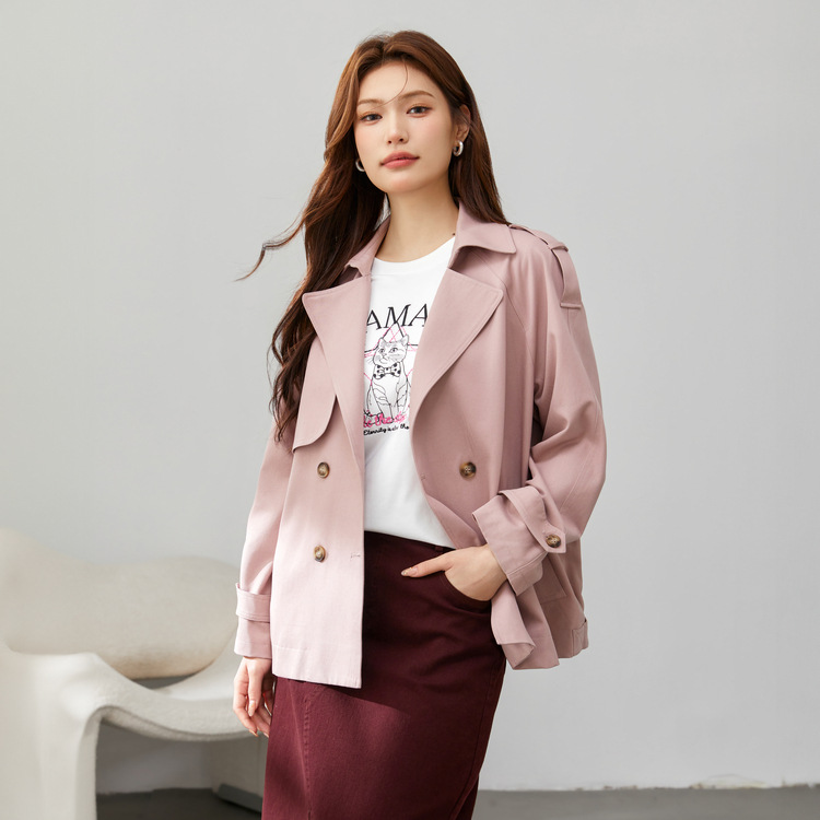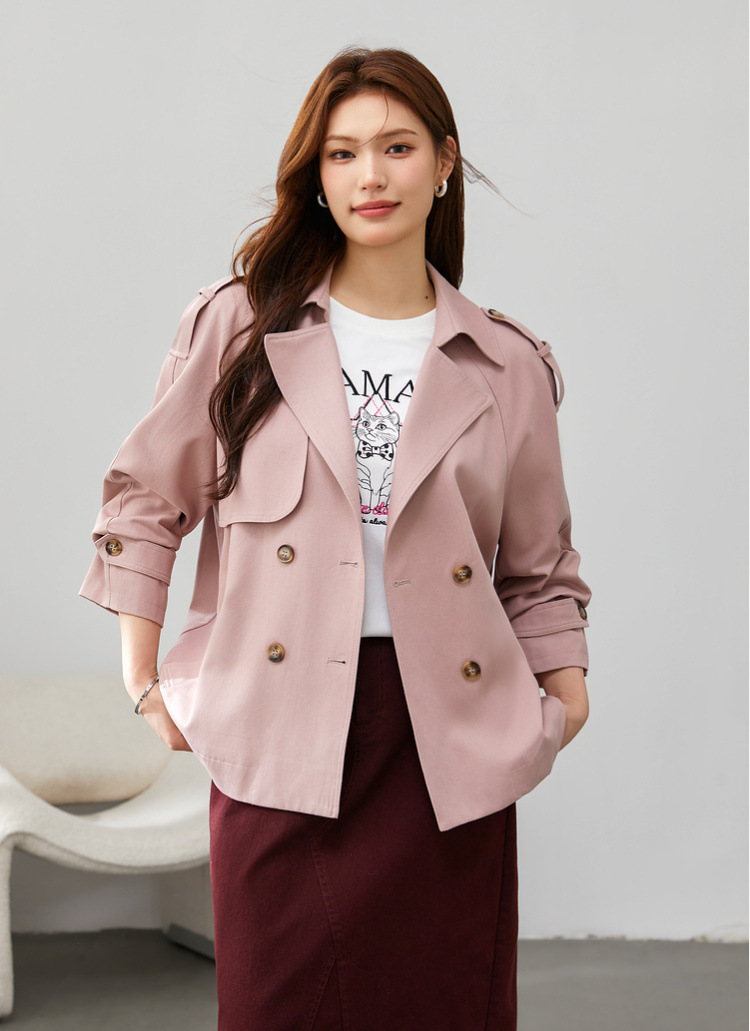 [Лезель хлопок твил короткий темпераментный плащ] Плоский большой размер женский толстый mm2025 весенний новый