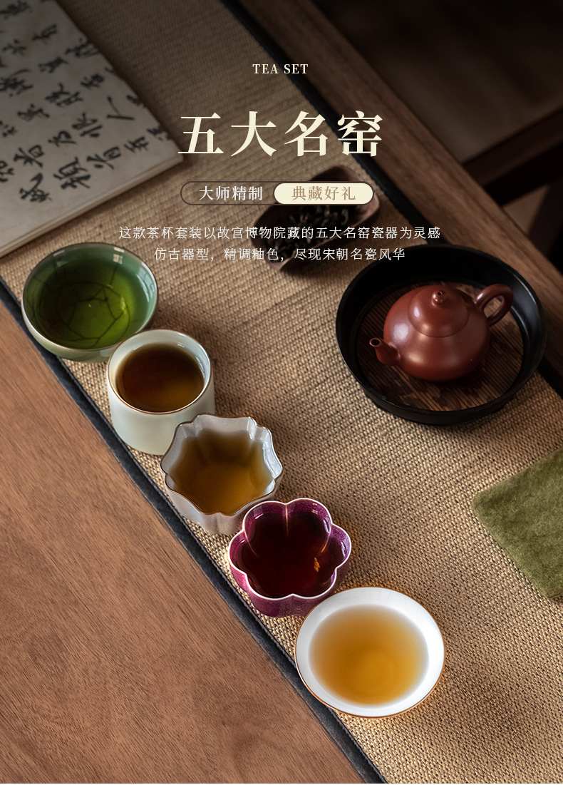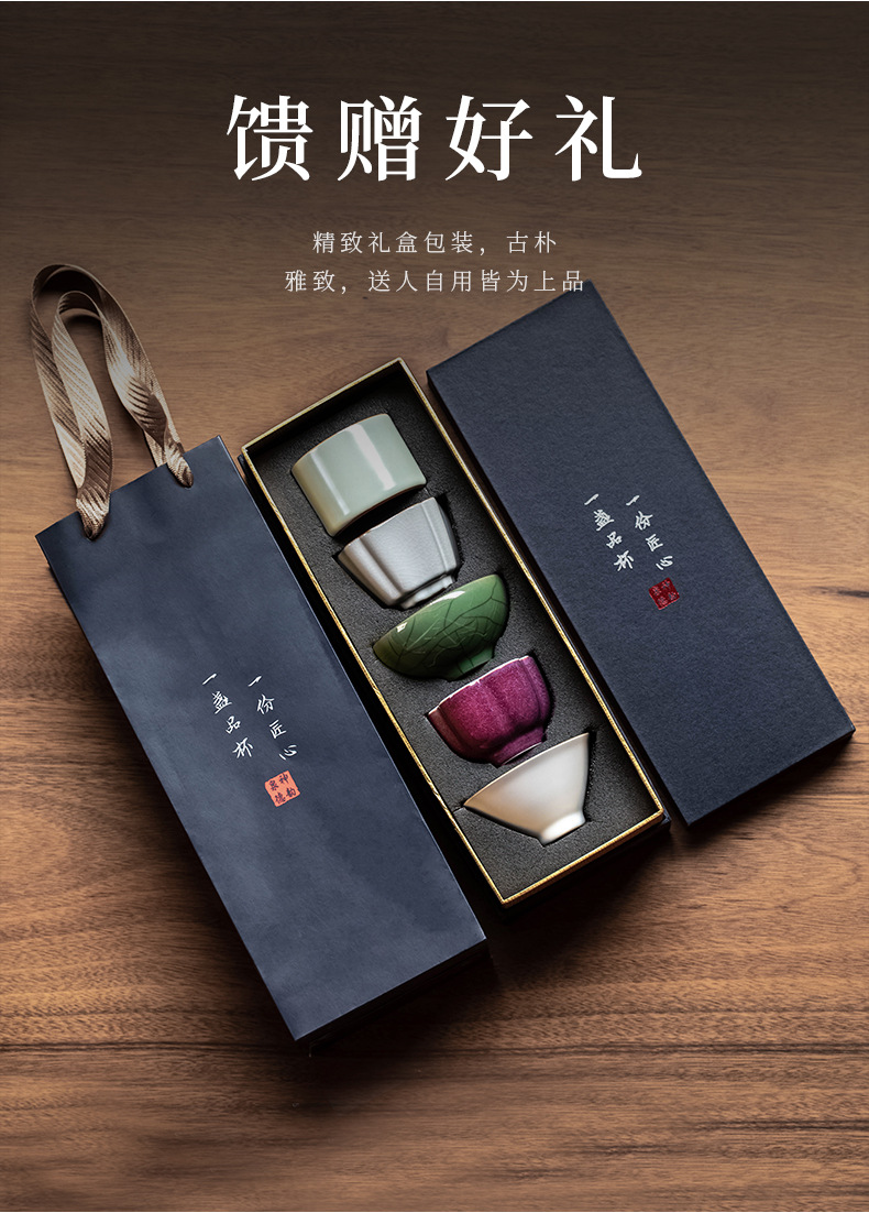 Пять чашек в подарочной упаковке (первый выбор для подарка); Пять чашек (защитная упаковка); Индивидуальный логотип (контакт); Одиночная чашка печи Гуань; Одиночная чашка Ge Kiln; Ру печь одна чашка; Динь печь одна чашка; Джун пешка, одна чашка; Подарочная коробка на одну чашку (необходимо сфотографировать отдельно); Один случайный