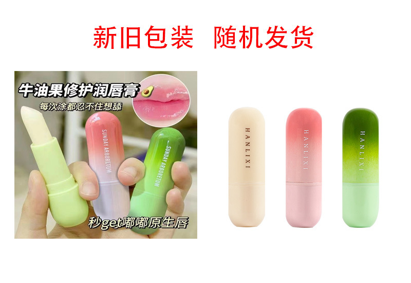 Мятная помада со вкусом [зеленая]; Фруктовая помада авокадо [белая]; Помада со вкусом клубники [розовая]