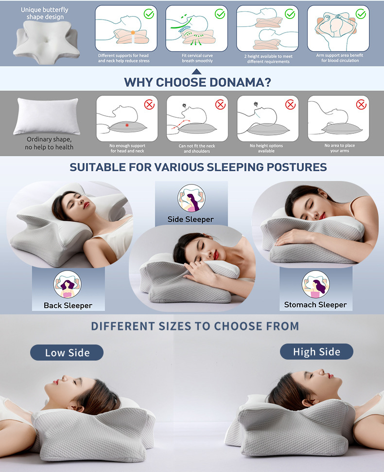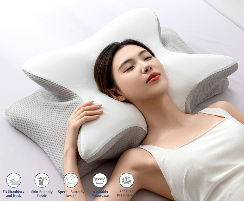 Трансграничная амазонка в рулонов рога бабочки с медленным отскоком Хлопковая подушка памяти для домашнего шейного отдела позвоночника Нулевое давление Подушка памяти