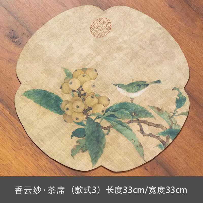 Чайный коврик для птицы, приготовленный из фруктов, круглый; Чайный коврик Pipa Mountain Bird круглой формы; Фруктовый птичный чайный банкет длинной формы; Чайный коврик Pipa Mountain Bird длиной формы