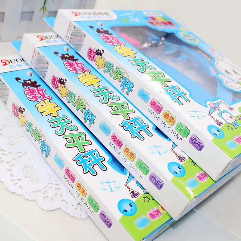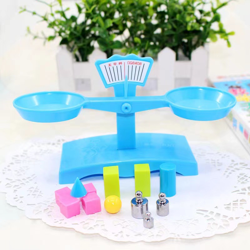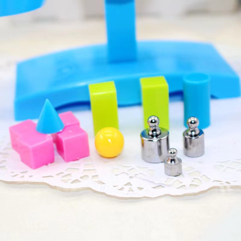 商品组成:天平秤1套,正方体4个,圆锥体1个,长方体2个,球体1个,砝码3个(2g/5g/10g),
