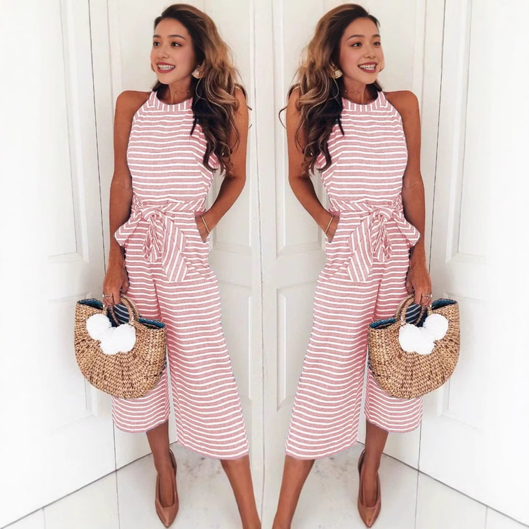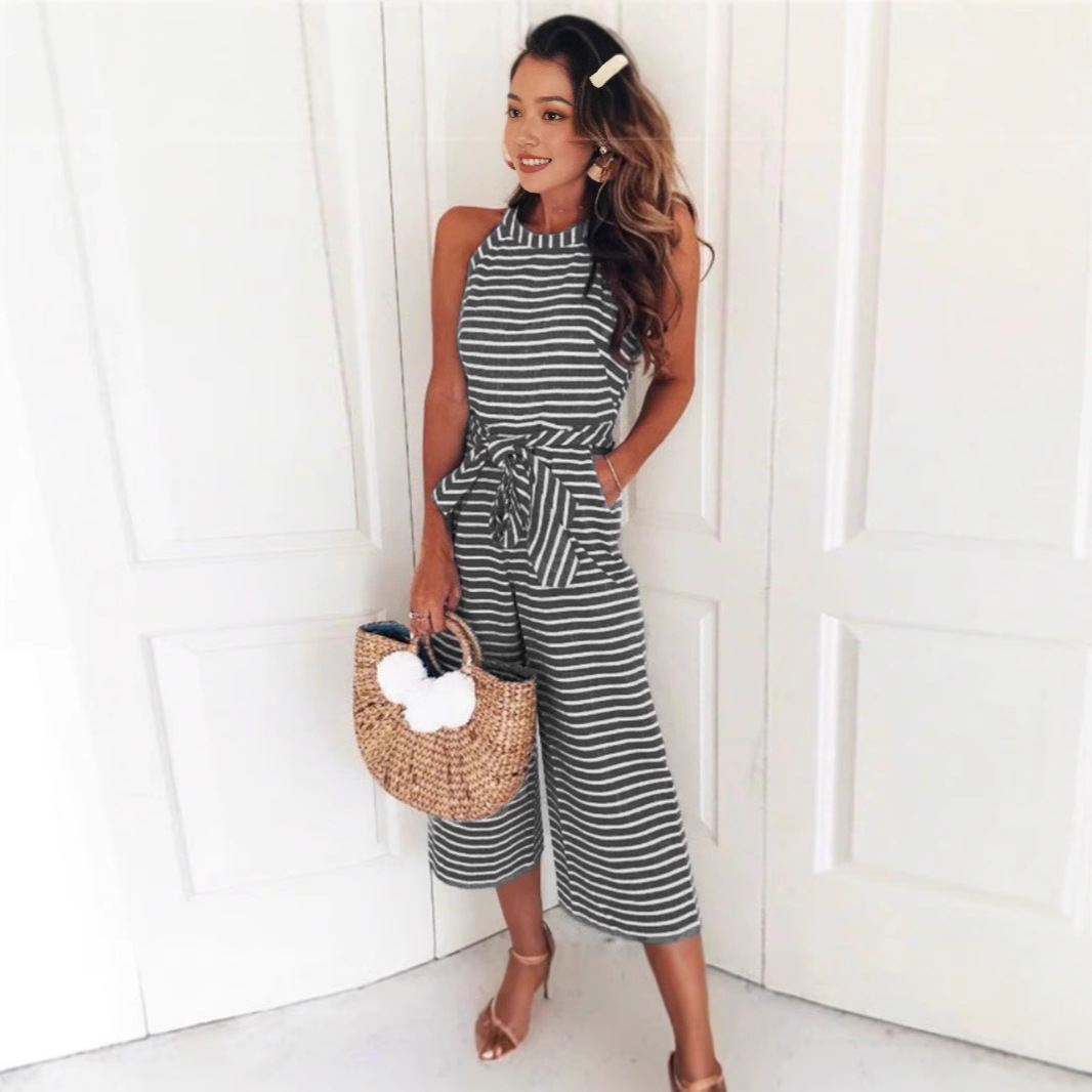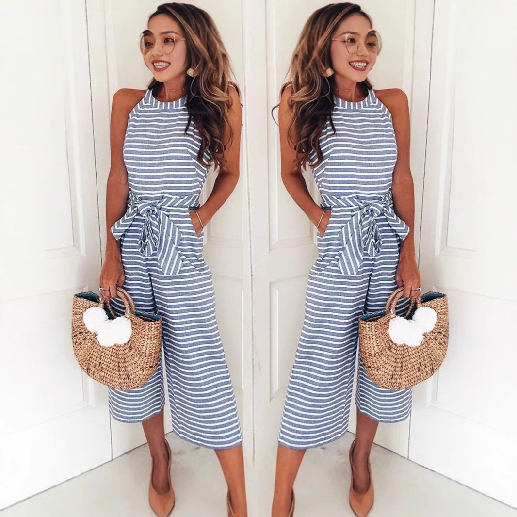 Новая модель 2025 года: модный облегающий комбинезон с завязками и полосками, с круглым вырезом, визуально стройнящий, хит продаж на Amazon и eBay.