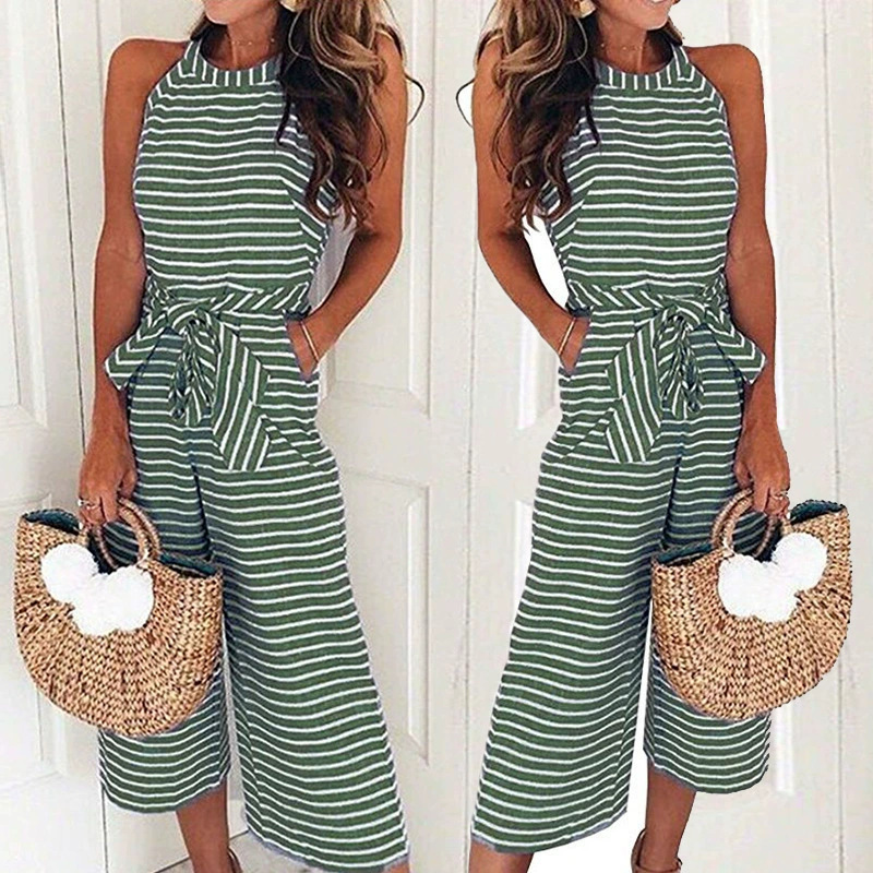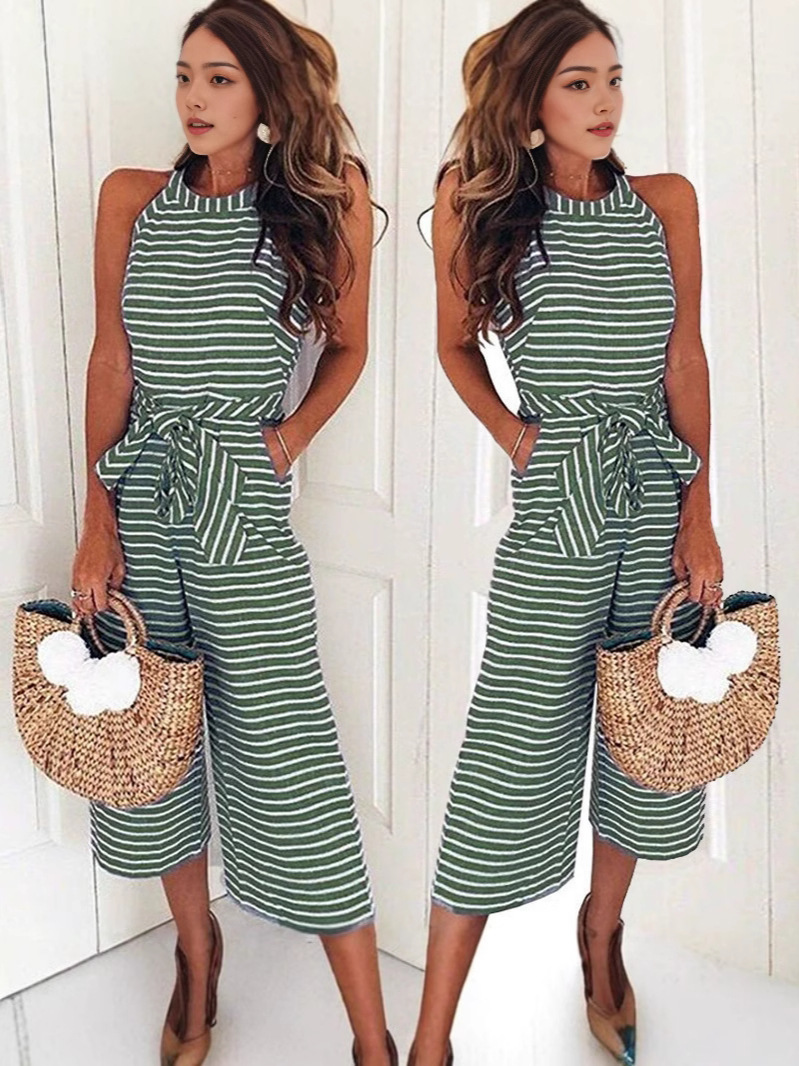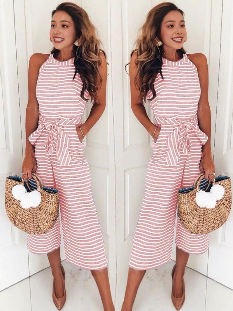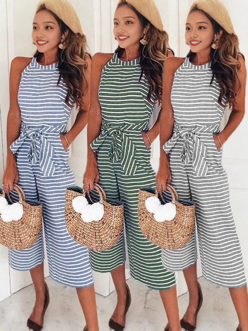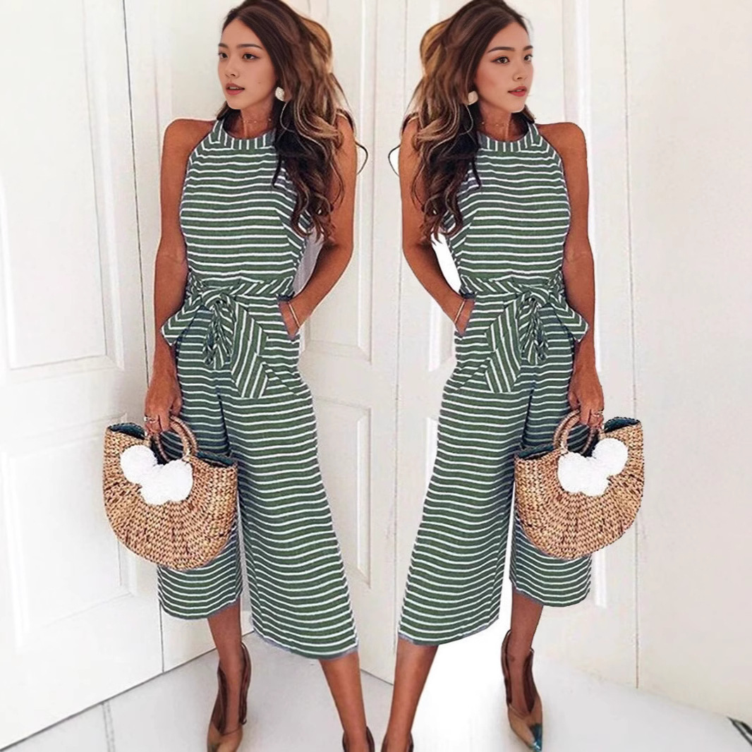 Новая модель 2025 года: модный облегающий комбинезон с завязками и полосками, с круглым вырезом, визуально стройнящий, хит продаж на Amazon и eBay.