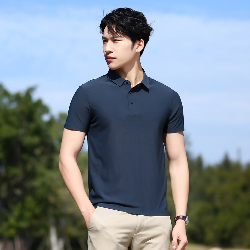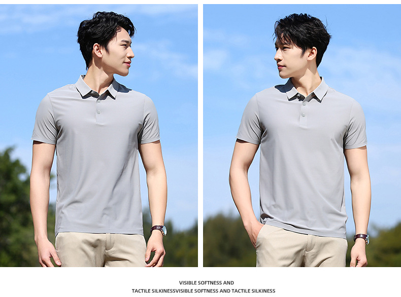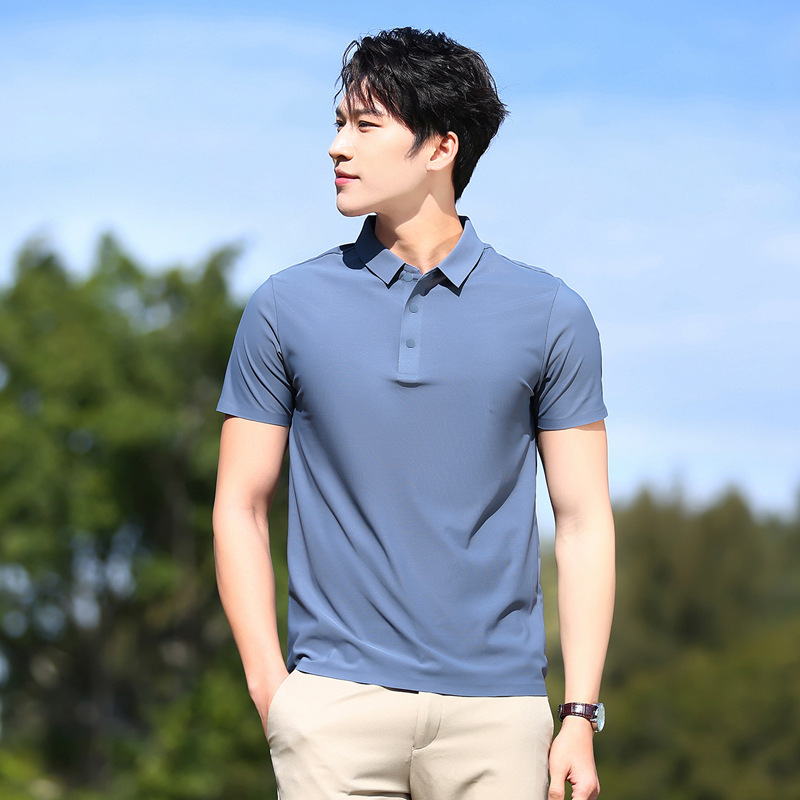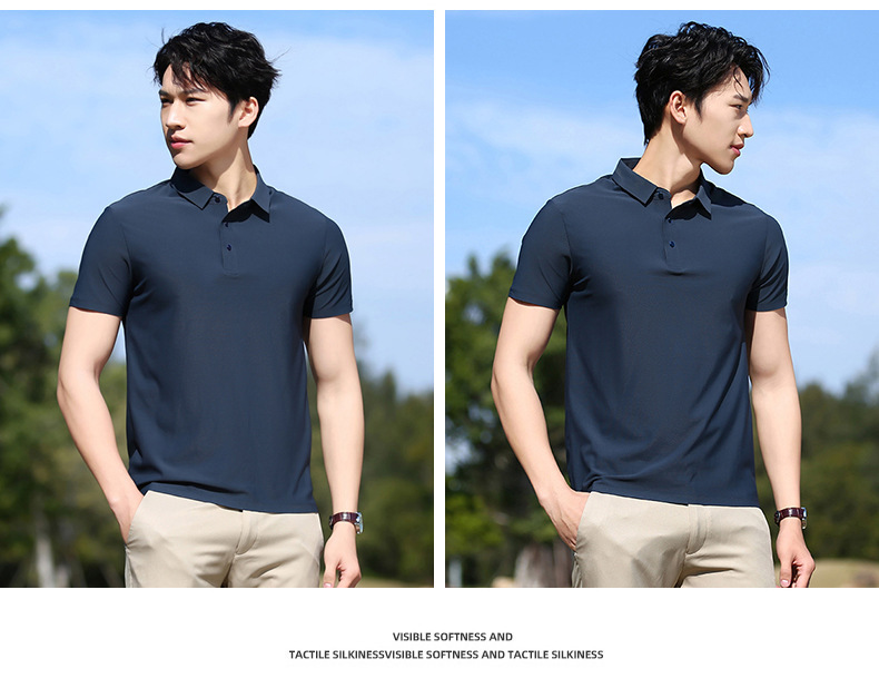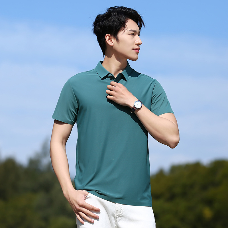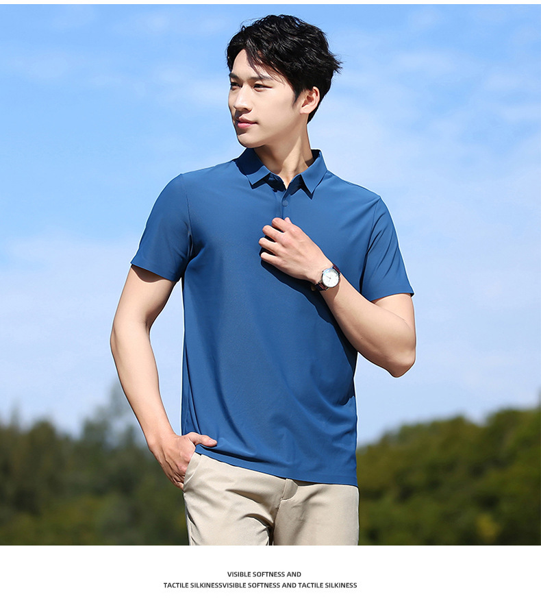 Летний ледяной шелк без следов мужская рубашка поло рабочая одежда тонкая деловая повседневная эластичная дышащая пара с короткими рукавами
