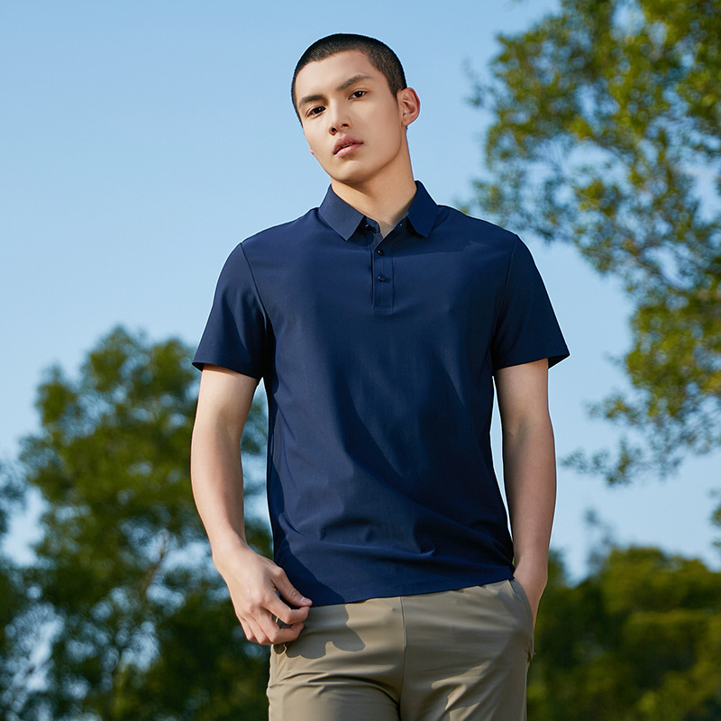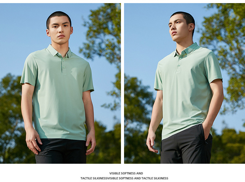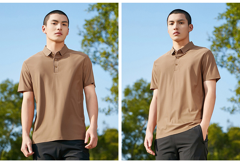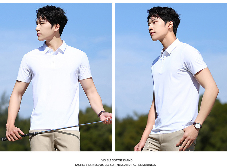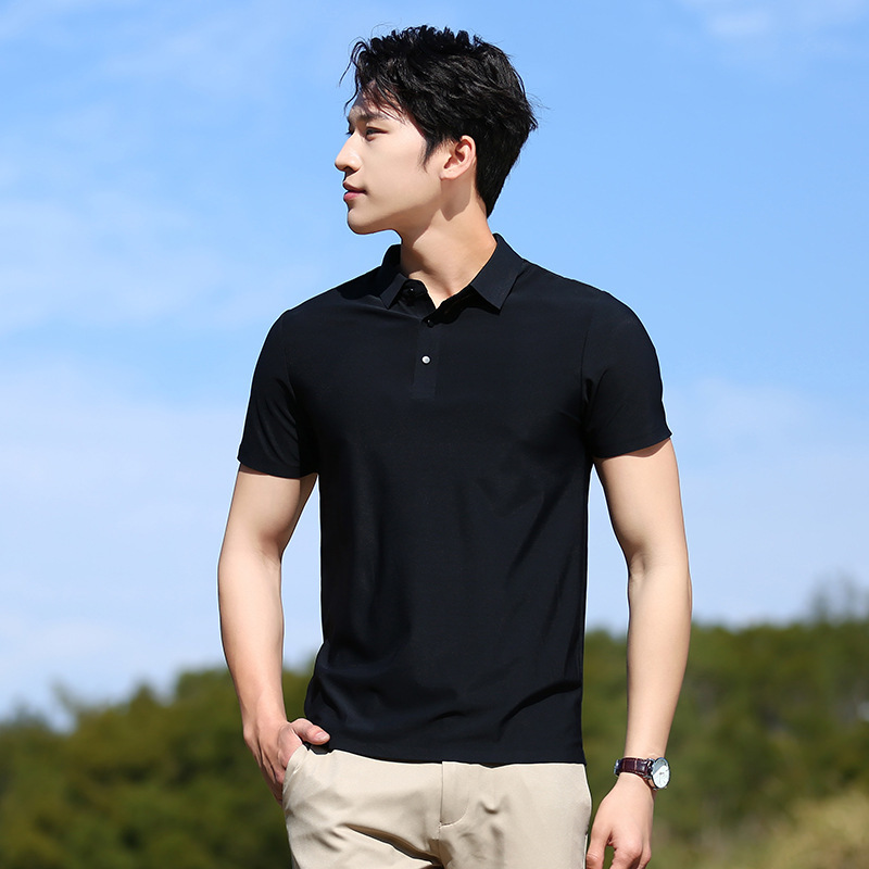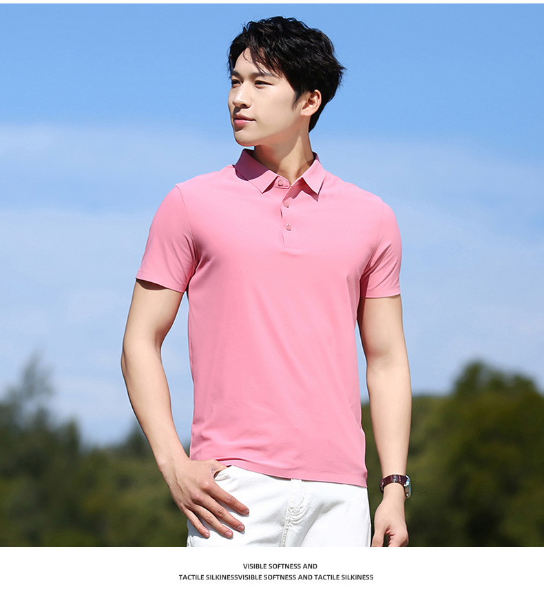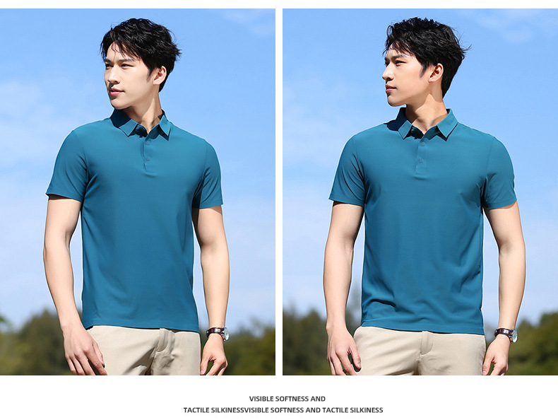 Летний ледяной шелк без следов мужская рубашка поло рабочая одежда тонкая деловая повседневная эластичная дышащая пара с короткими рукавами