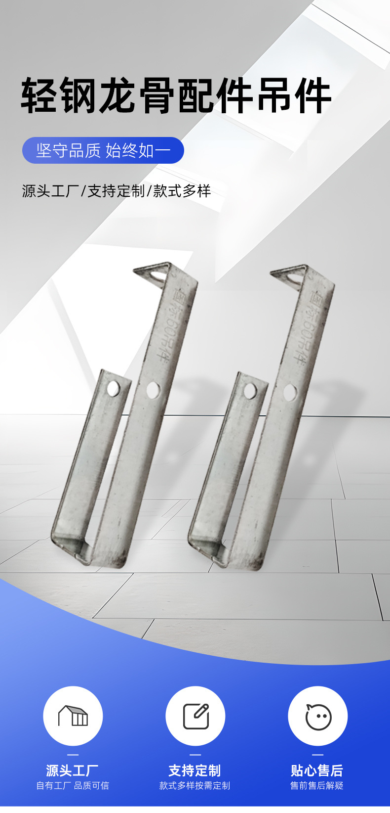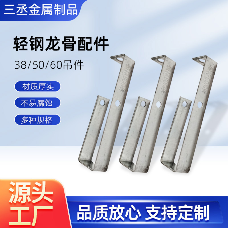 Оптовые аксессуары для легких стальных каркасов от производителя: 7-образные прямые подвесы 38/50/60, комплектующие для подвесных потолков, основные элементы каркаса из легкой стали.
