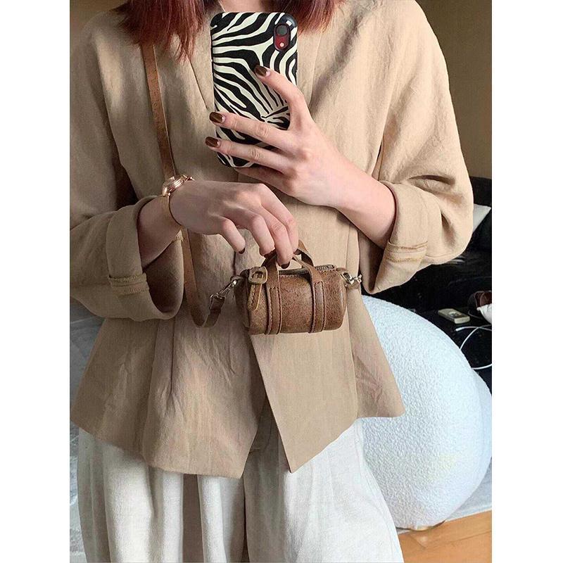 Сумка Тотт Сумка Сумка Женская сумка Ретро Коричневый 2025 Мини-Изысканная нишея Высокое чувство цилиндр
