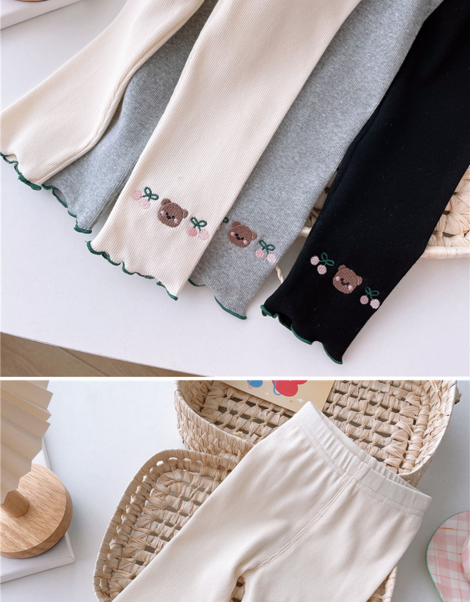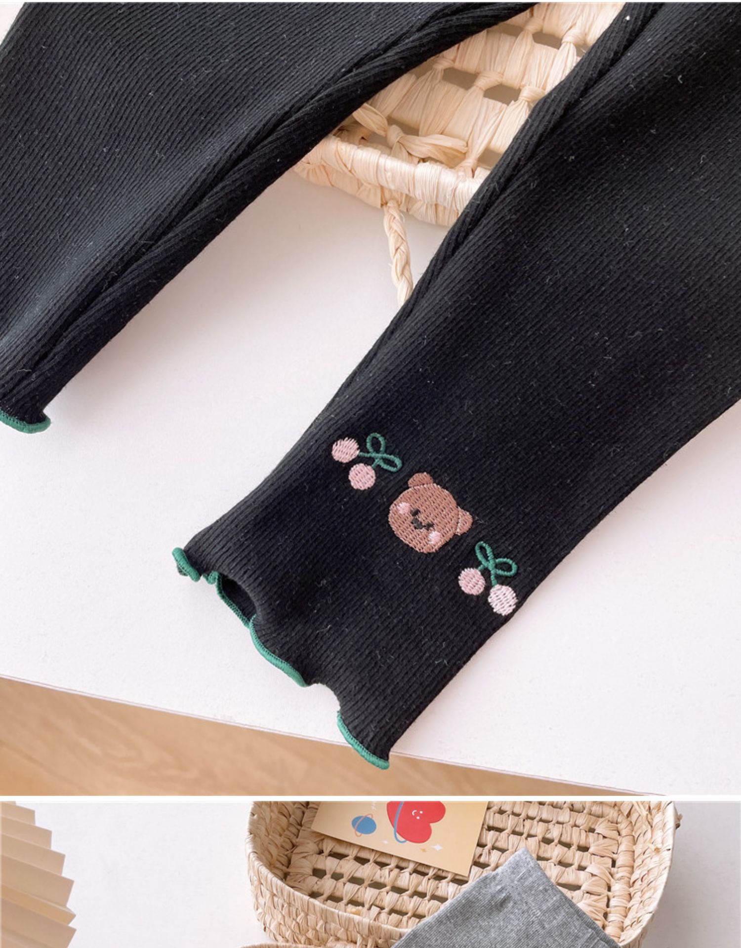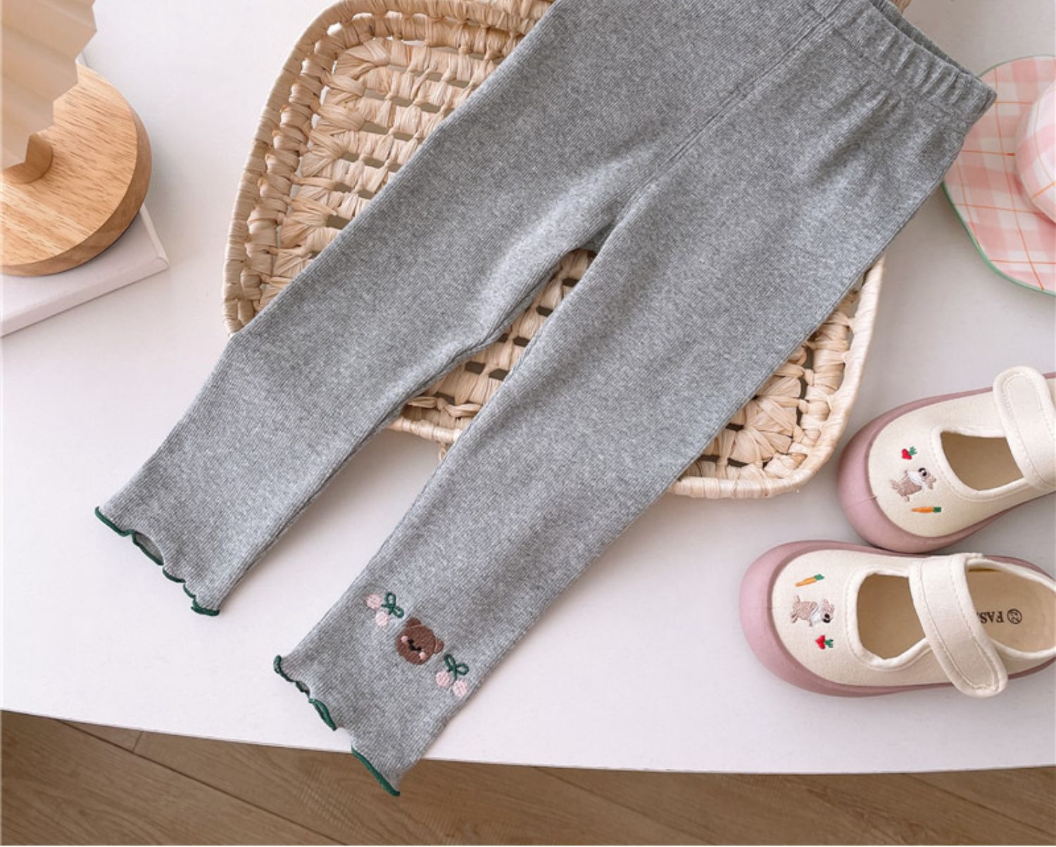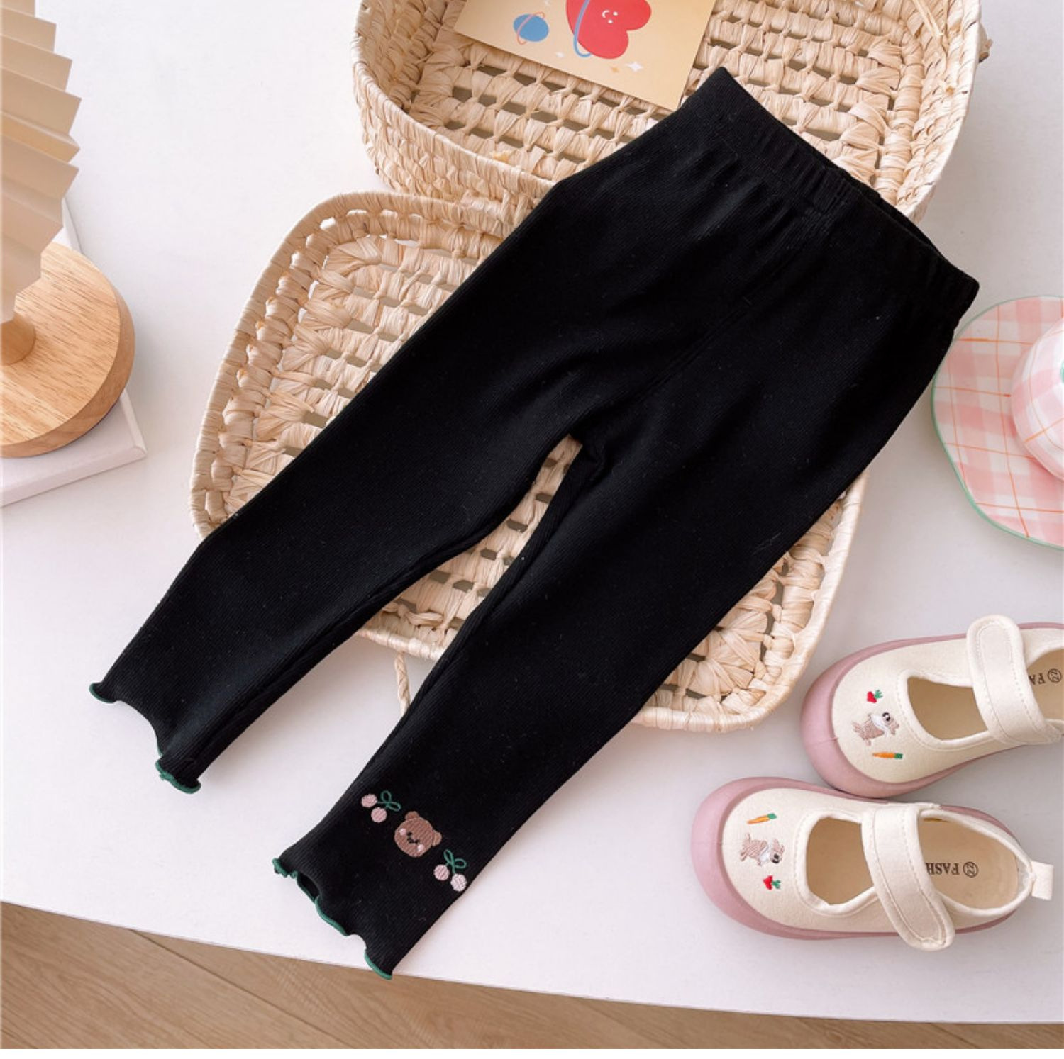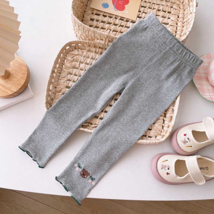 Детские леггинсы 2025 осень новая корейская версия девушки с вышивкой ушанки брюки узкие брюки с вышивкой милые