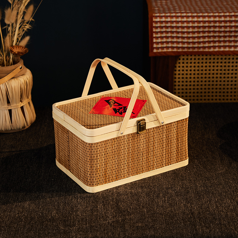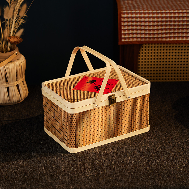Ручная работа, элитные зонги, крабы с шерстяным пухом, лунные пряники, подарочная коробка с фруктами, внешняя упаковка из бамбуковой плетеной корзины, подарочная коробка.