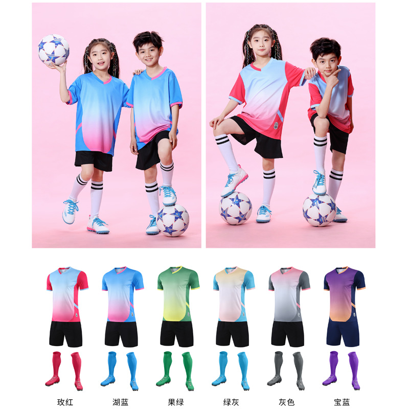 25 новый набор футбольных костюмов для студенческих игр тренировочный костюм для быстрых сухих спортивных трикотажных изделий для детей с короткими рукавами