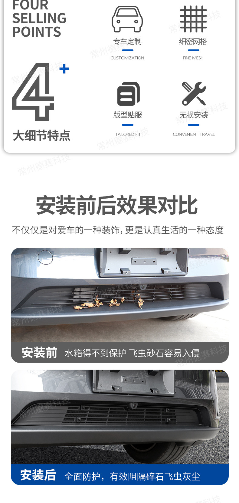 Обновленная защита от насекомых на передней решетке радиатора модели Y/YL — интегрированная съемная конструкция; Обновленная защита от насекомых на переднюю решетку модели Y/YL — раздельная и съемная конструкция; Обновленная защита радиатора передней решетки для Model Y/YL – интегрированная система быстрого снятия