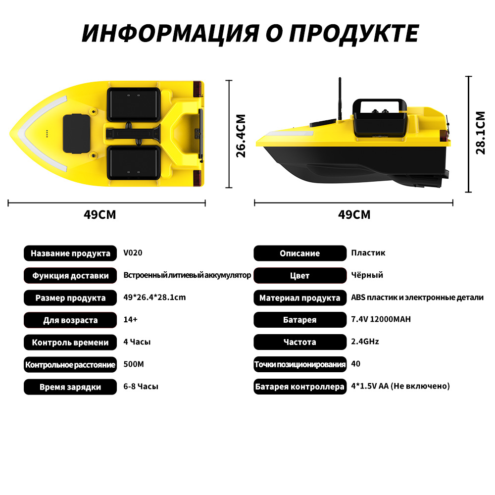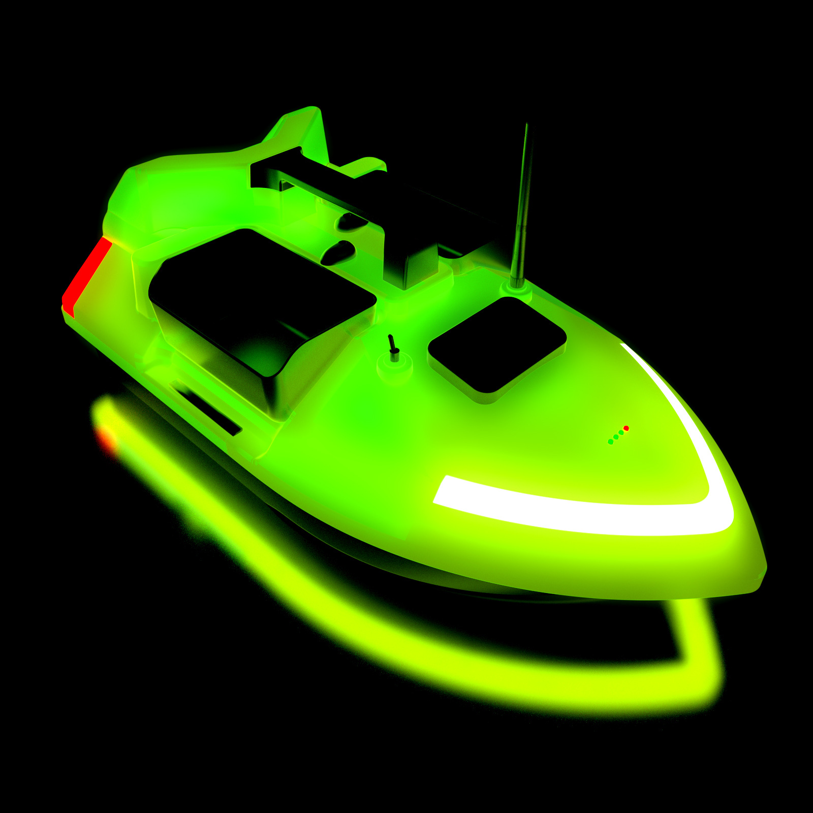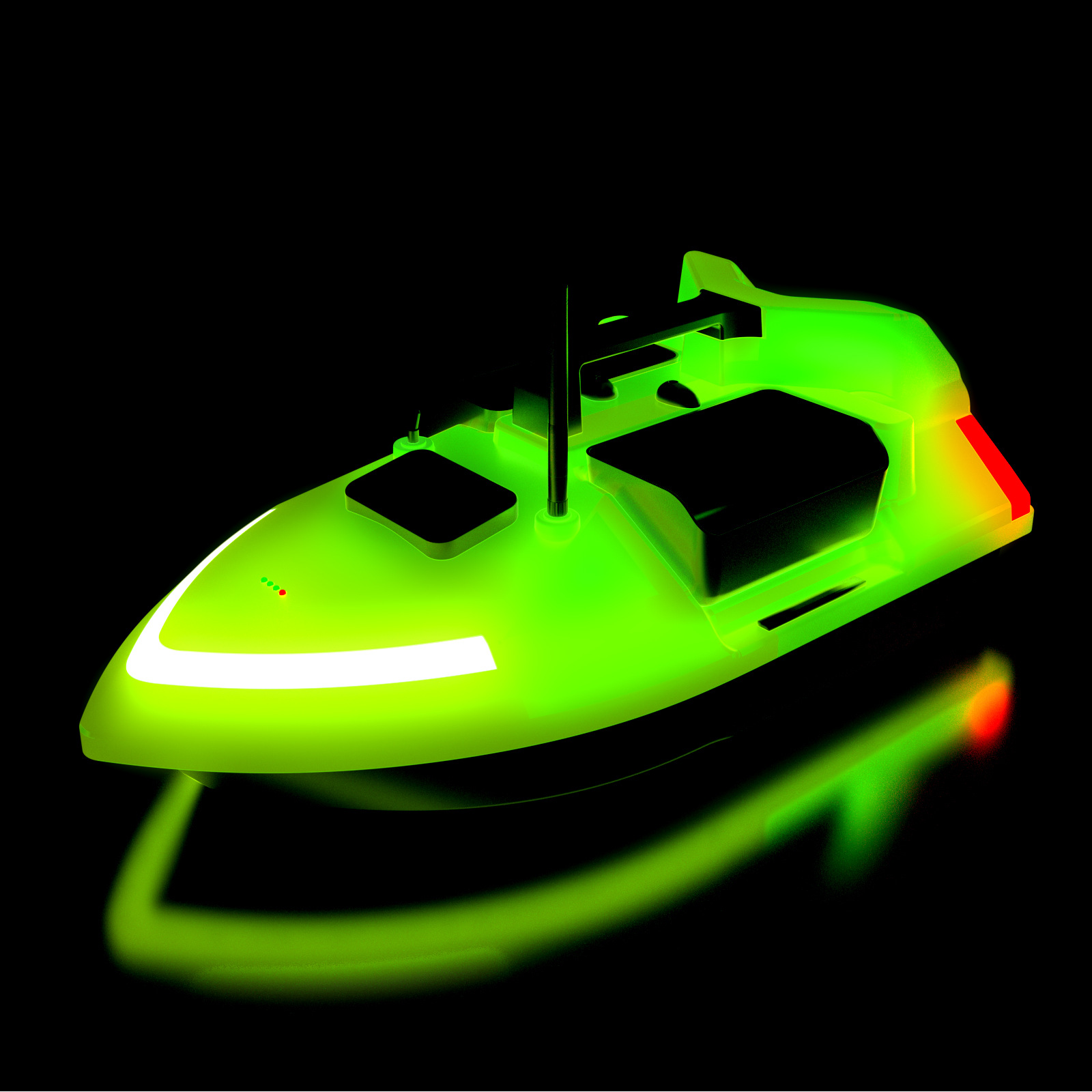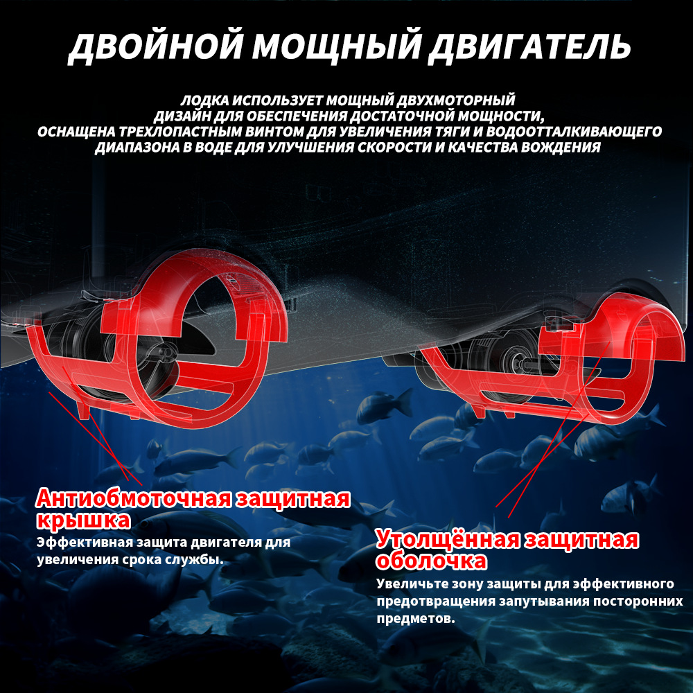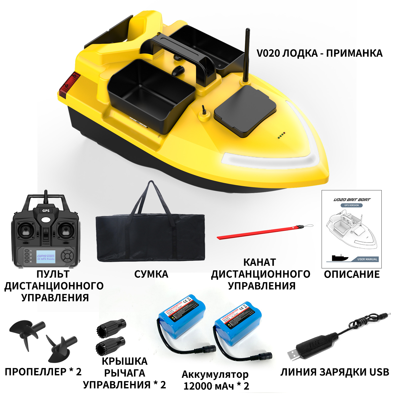 1. передний и задний ход, левый и правый поворот, огни для ночной рыбалки, 3-камерное гнездо, отправка крючков