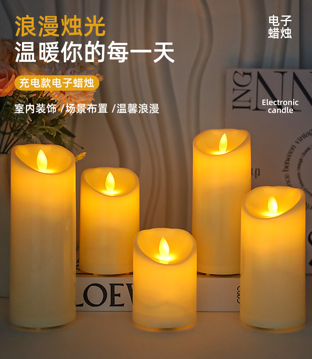 Трансграничная перезаряжаемая светодиодная электронная свеча Концерт Свадьба Рождественское украшение Атмосфера Реквизит