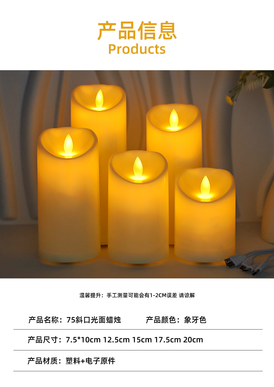 【产品名称】【充电款】 75斜口光面摇摆头蜡烛