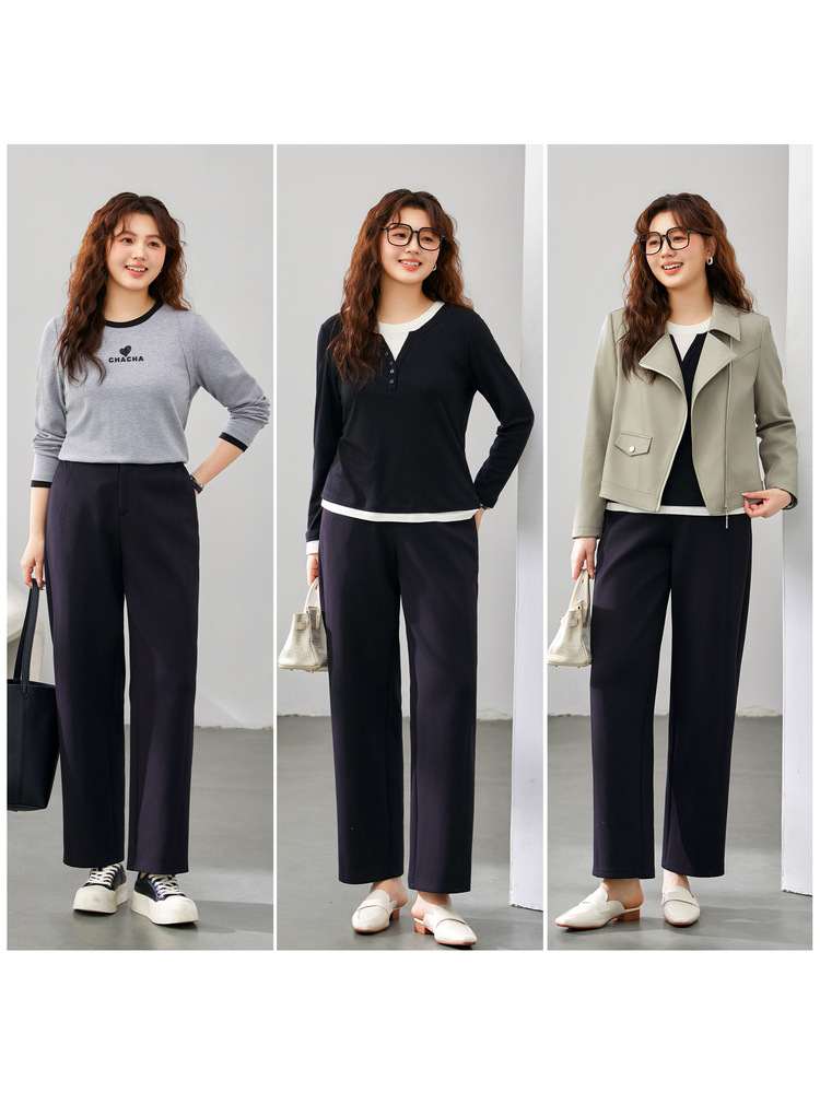 [Затянутая задняя талия удобная дикая тонкая и сплошная брюки] Funny Show большой размер женский толстый mm2025 весенний новый