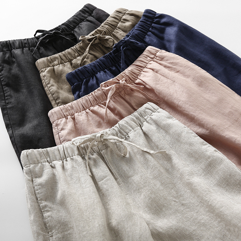 [Прямые брюки] Франция импортировала чисто льняные винтажные прямые брюки весной и летом тонкие свободные брюки для женщин