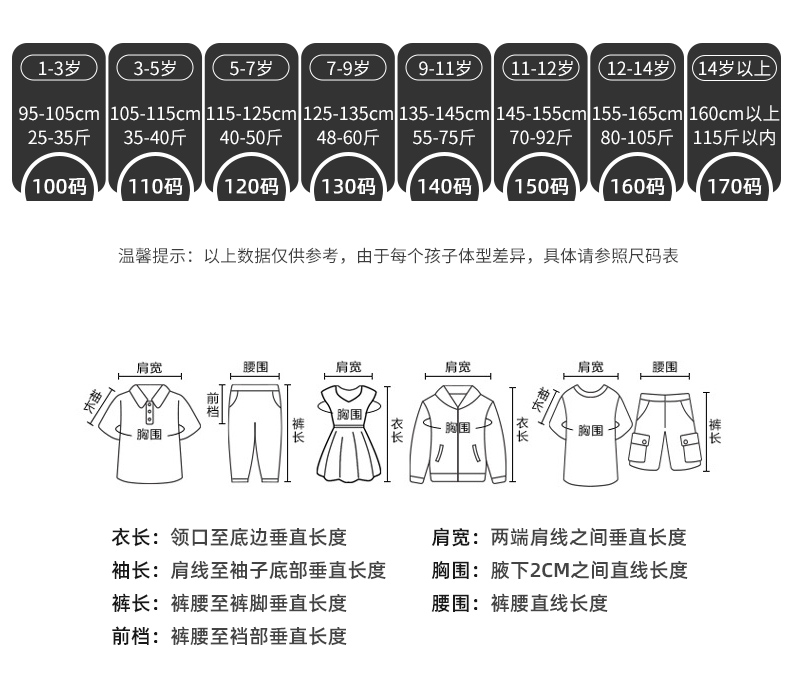 110cm; 120cm; 130cm; 140cm; 150cm; 160cm; 170cm
