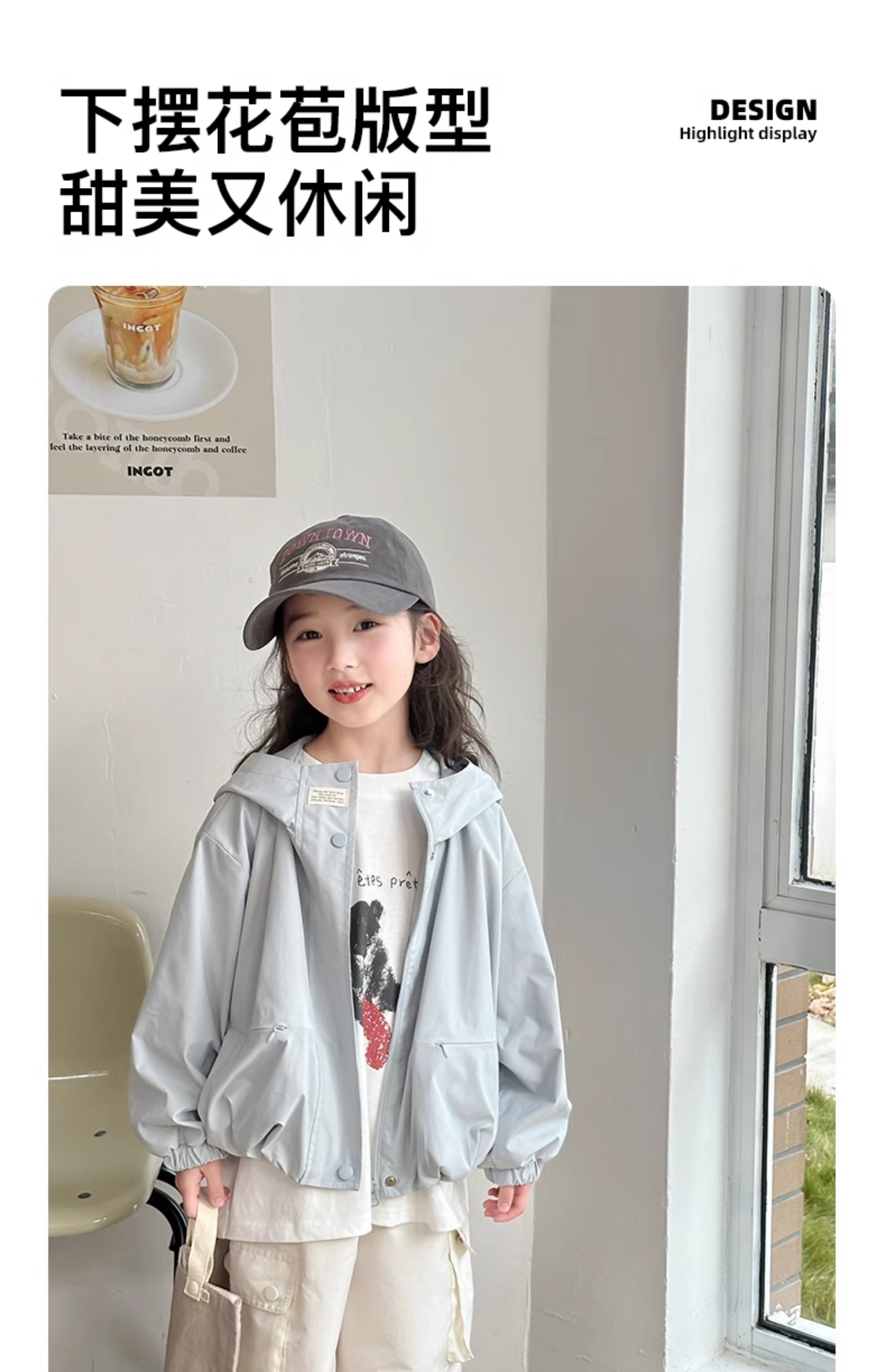 YOJIA куртка для девочек весна 2025 новый стиль иностранный дух на открытом воздухе маленькая девочка с капюшоном топ детская весенняя одежда