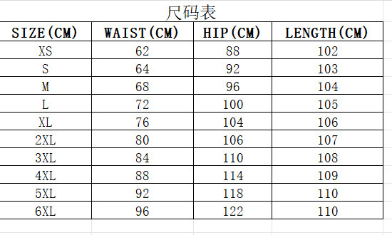 XS; S; M; L; XL; 2XL; 3XL; 4XL; 5XL; 6XL
