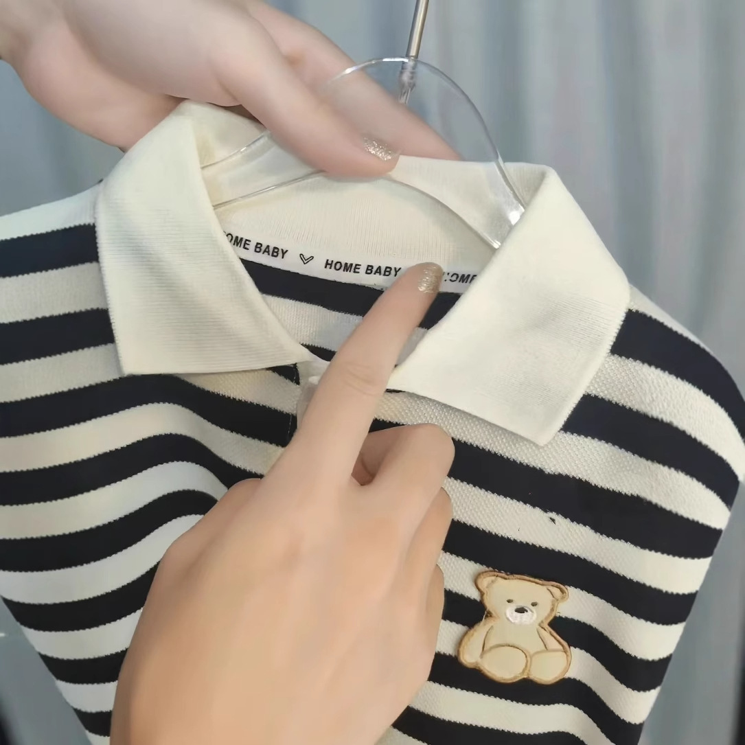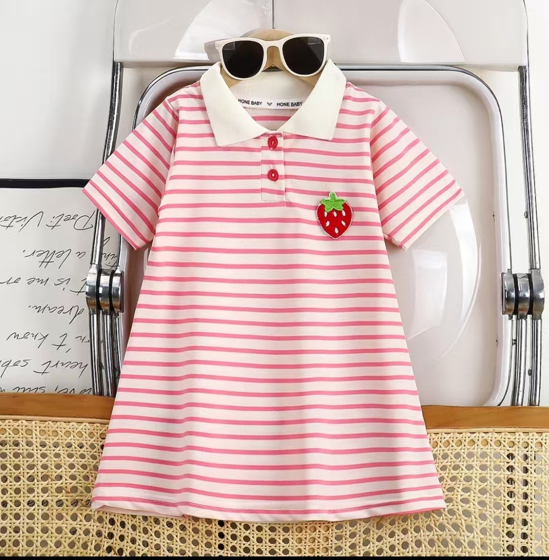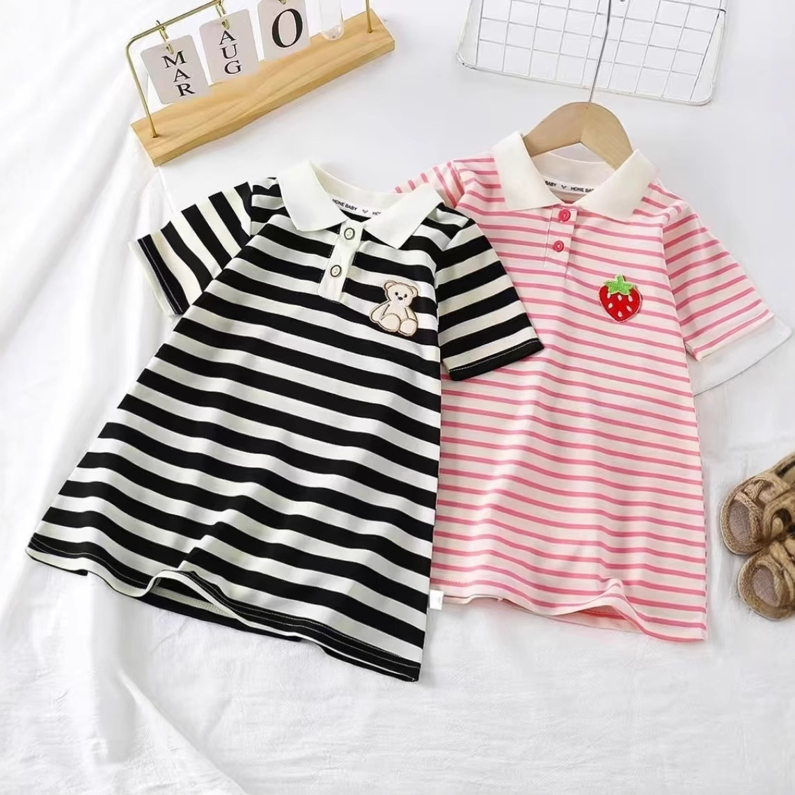 7201 черно-белые полоски-маленькая юбка-медведь; 7201 Розово-белая полосатая юбка с клубничным принтом