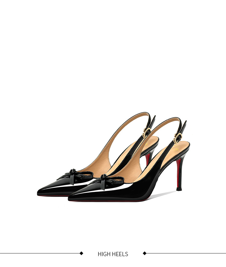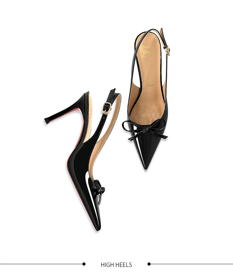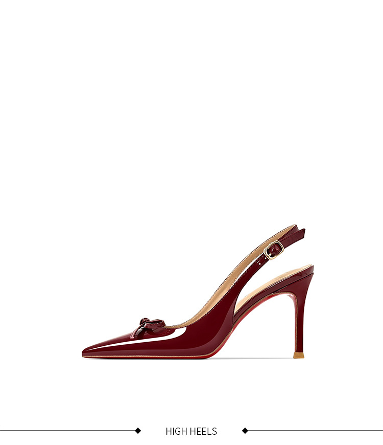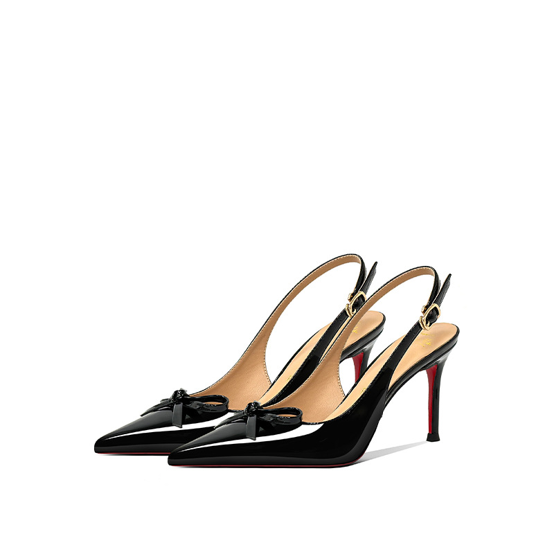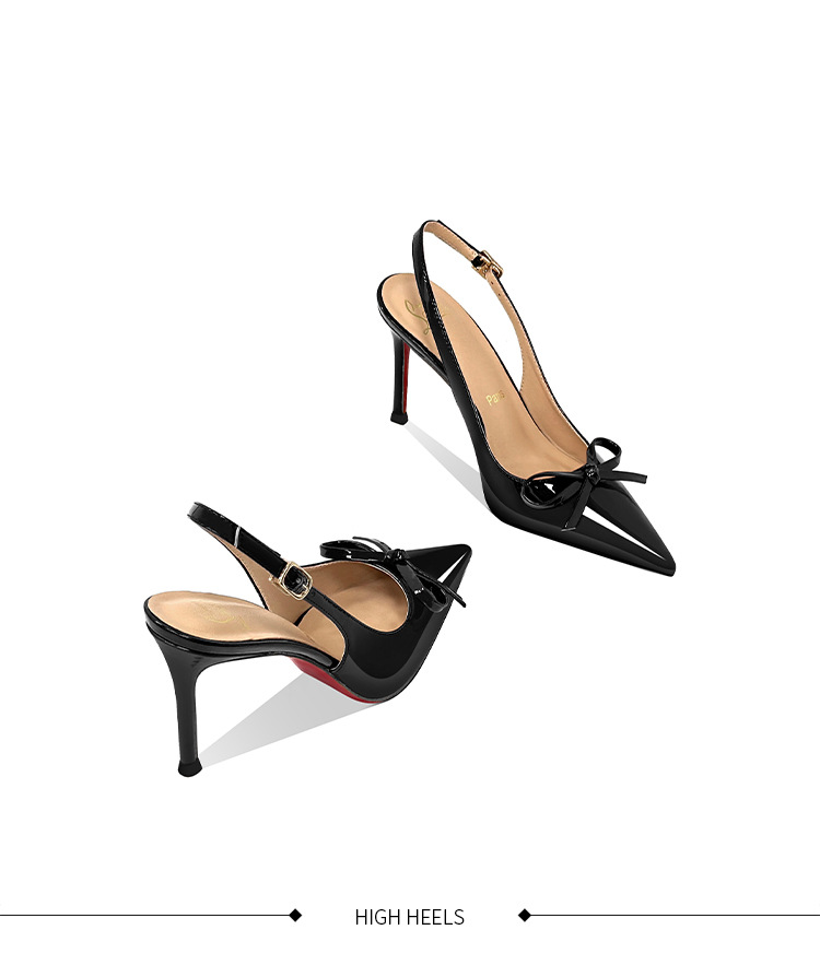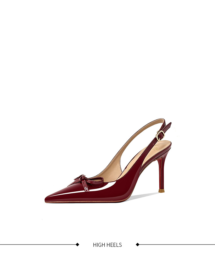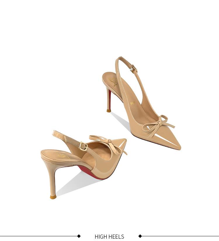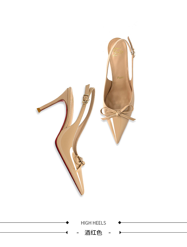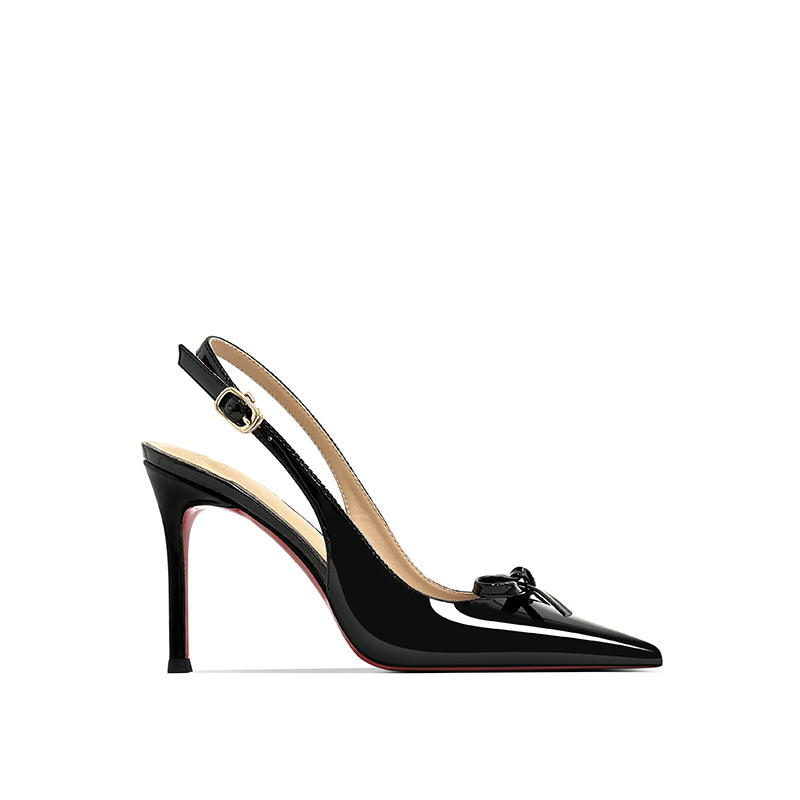 [Спот] Лук с лакированной кожей пустые одиночные туфли новые остроконечные туфли на каблуках на высоком каблуке