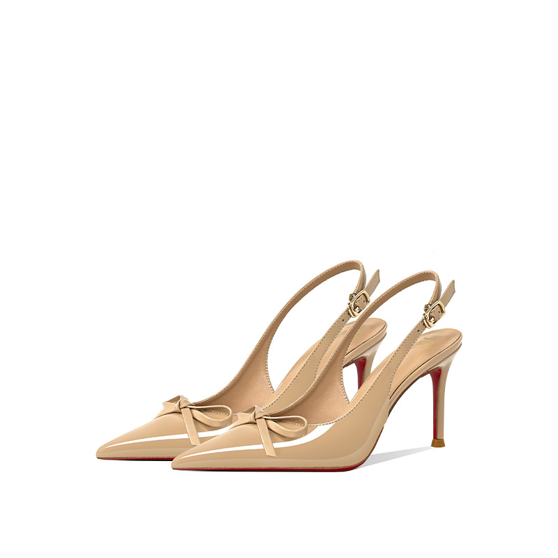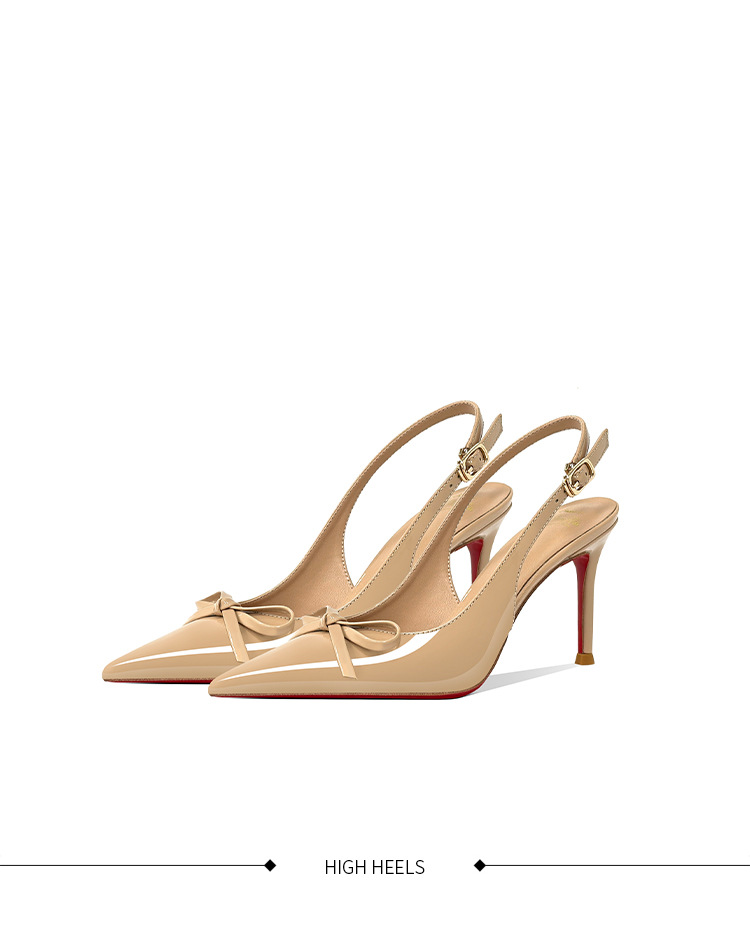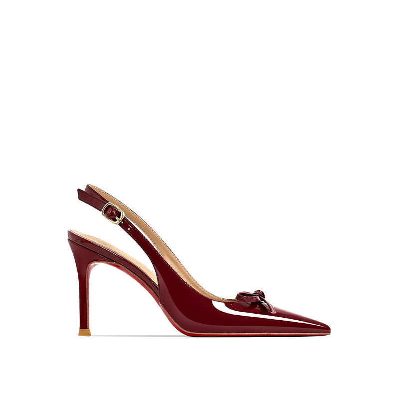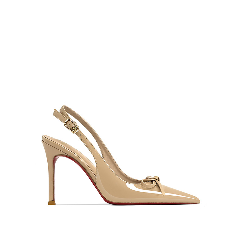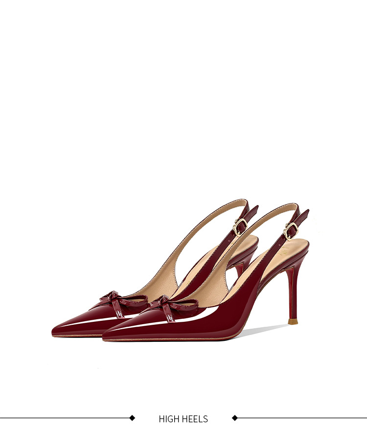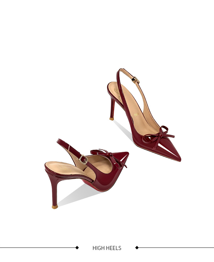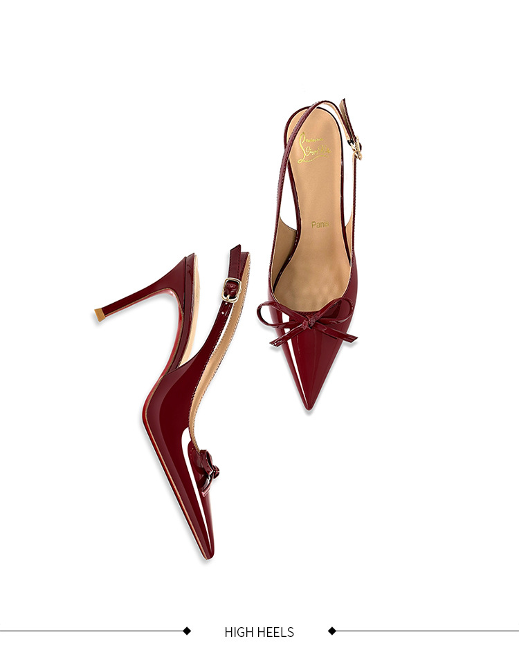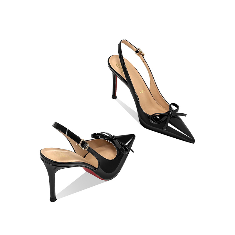 [Спот] Лук с лакированной кожей пустые одиночные туфли новые остроконечные туфли на каблуках на высоком каблуке