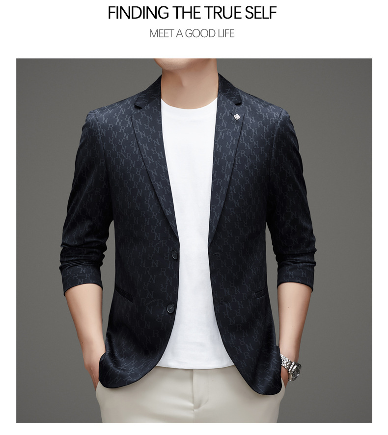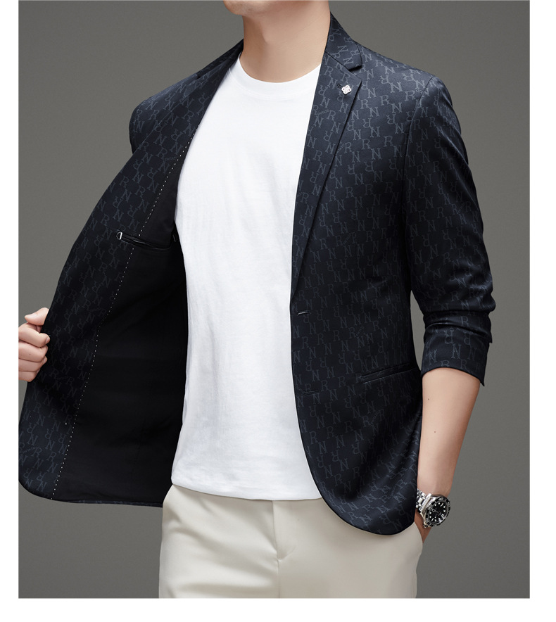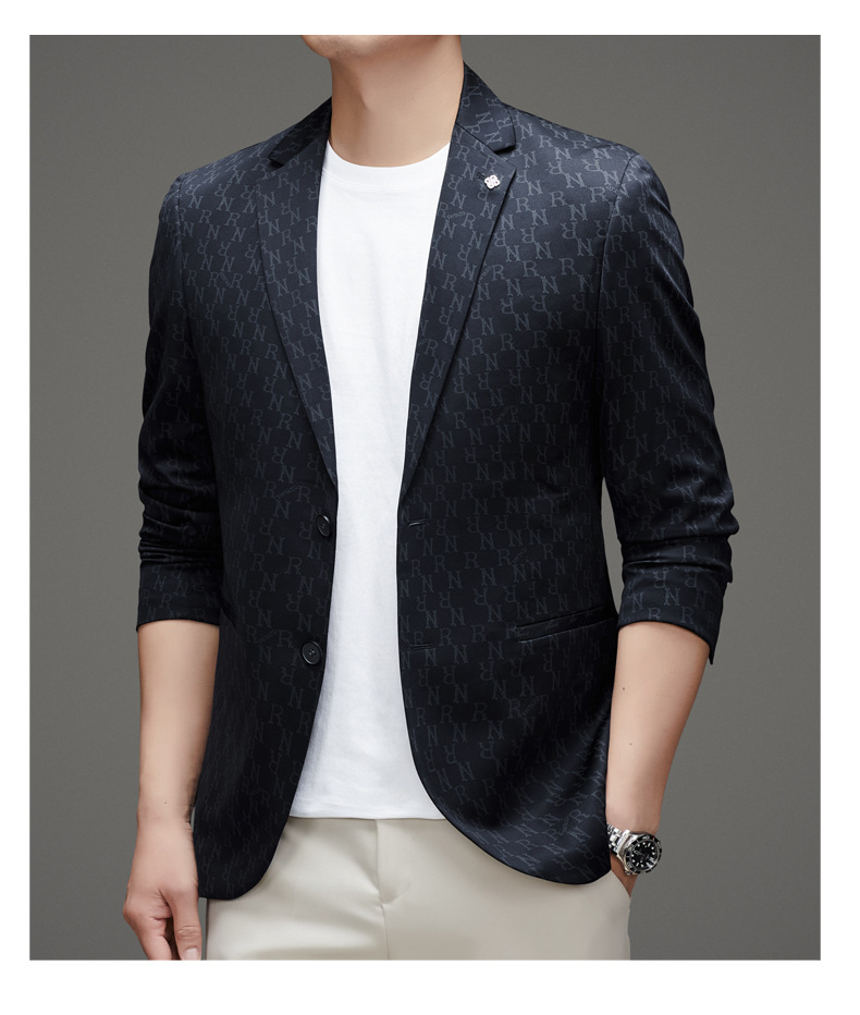 Модный принт мужской костюм весна 2025 новый молодежный повседневный тонкий модный костюм куртка мужской