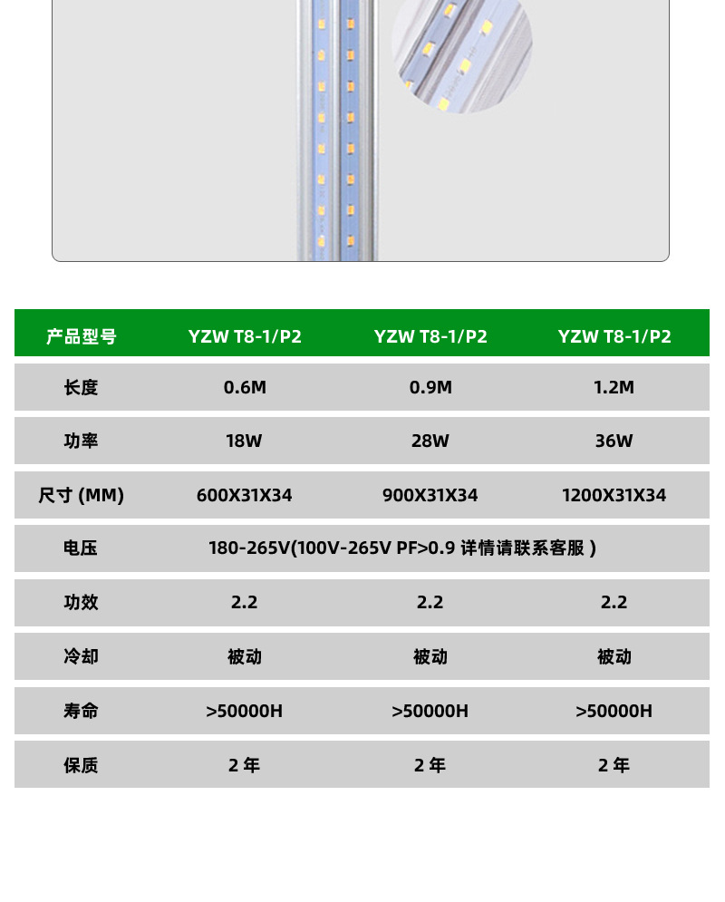 Тип T8V двухрядный 0.72m Вт; Тип T8V двухрядный 1.18m Вт; Тип T8V двухрядный 1.2m 36Вт