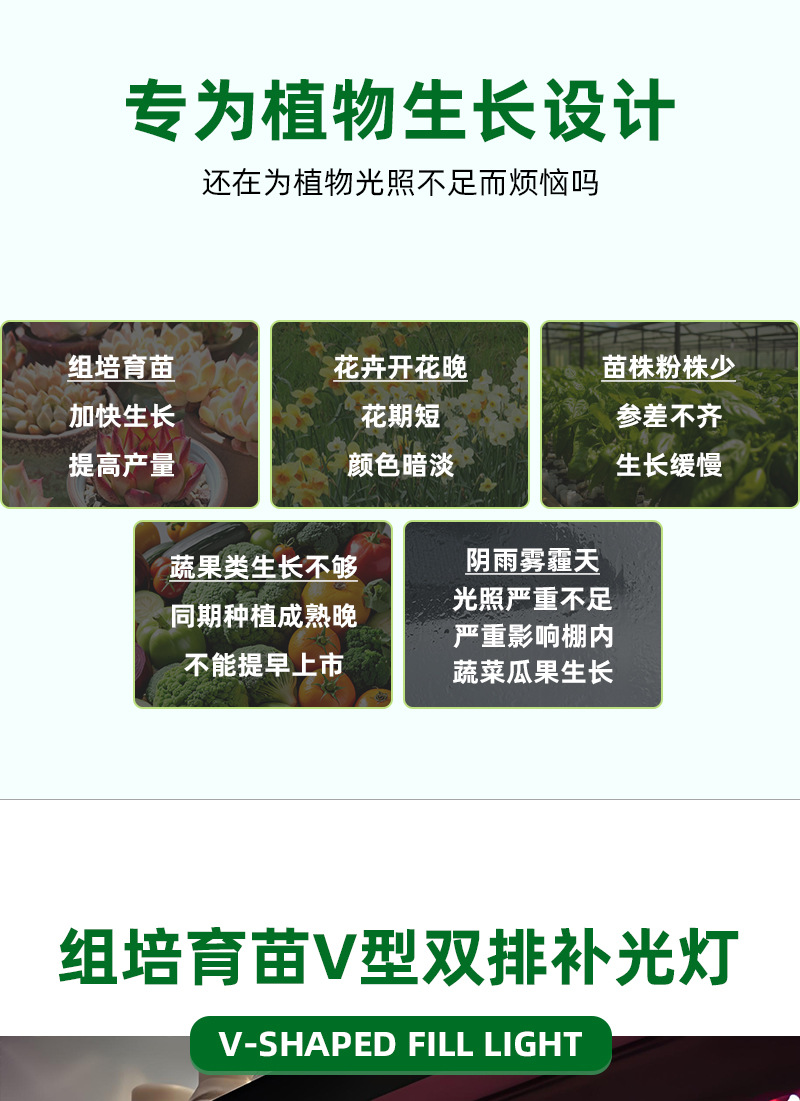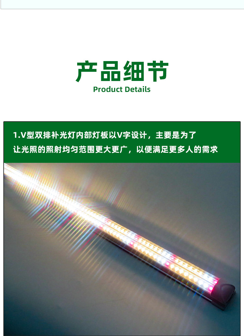 Красный и синий свет V-образная двухрядная лампа для растений Светодиодная широкоугольная светоизлучающая трансграничная лампа для выращивания рассады в помещении