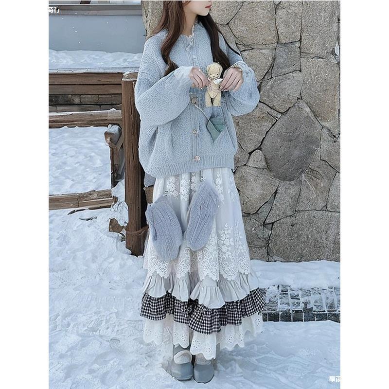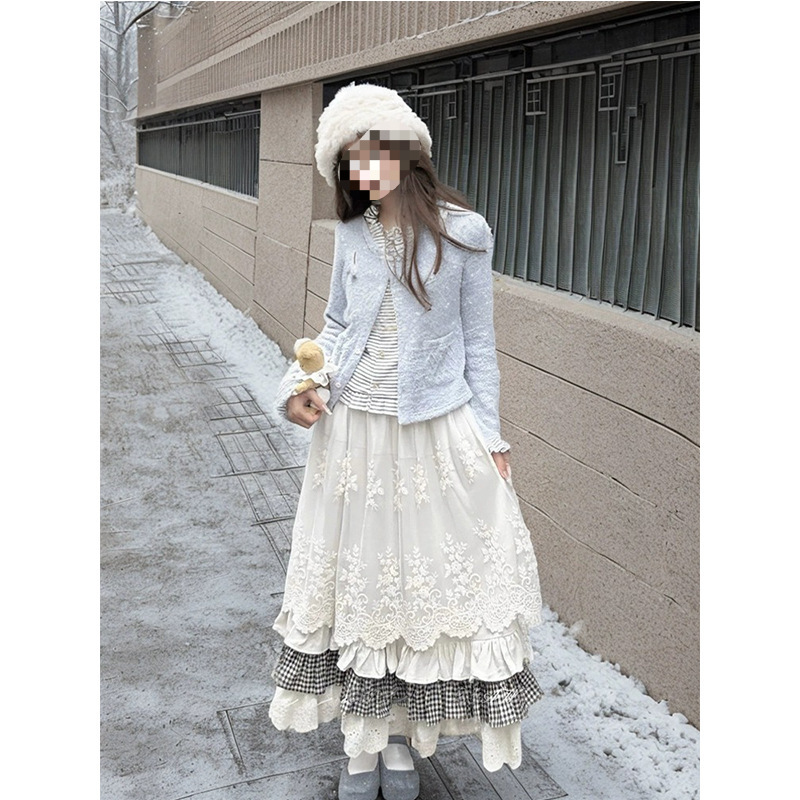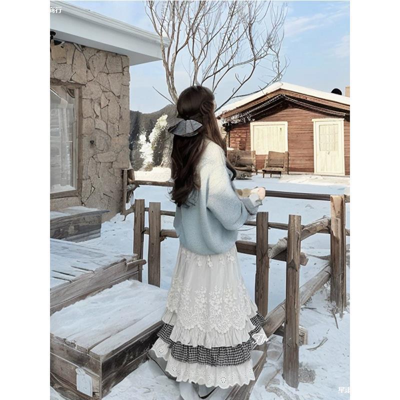 Сладкая кружевная сшитая юбка женского осеннего и зимнего дизайна