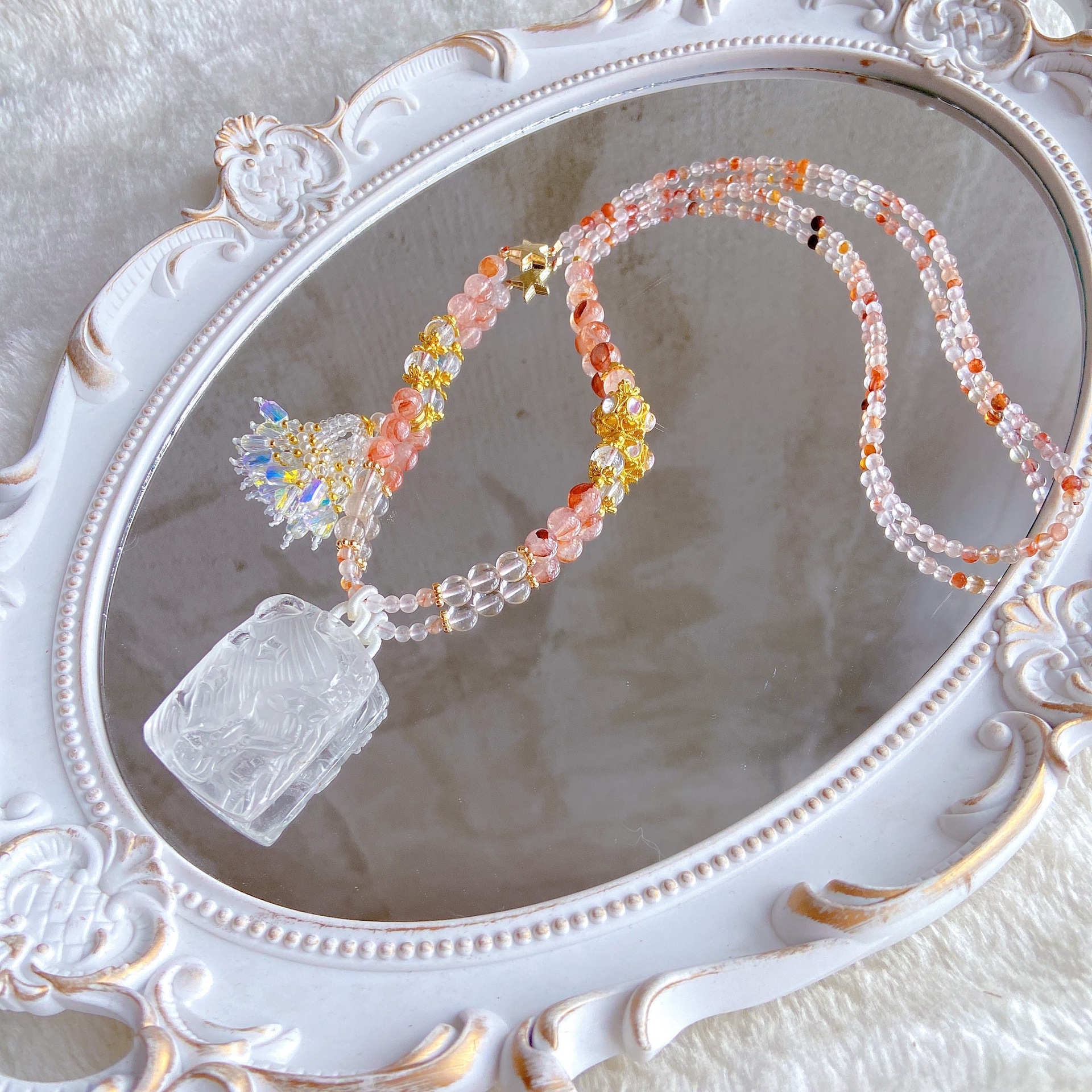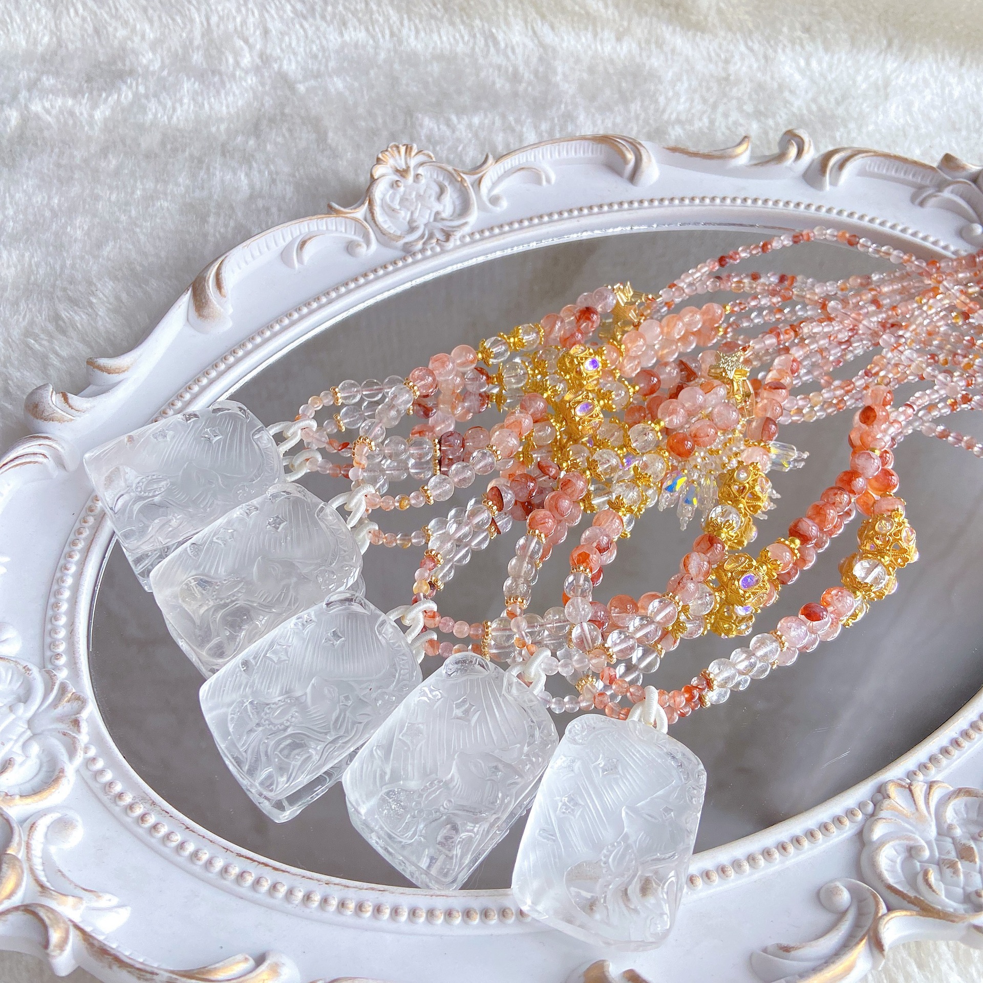 Натуральный красный клей цветок белый кристалл свитер цепочка длинное ожерелье белый кристалл бренд метеор лиса кистя дрожит красная книга