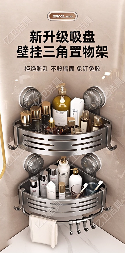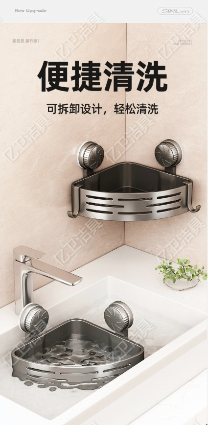 Треугольная корзина на присоске без перфорации, треугольная корзина для хранения в ванной комнате, треугольная полка для хранения косметики, корзина для хранения умывальника