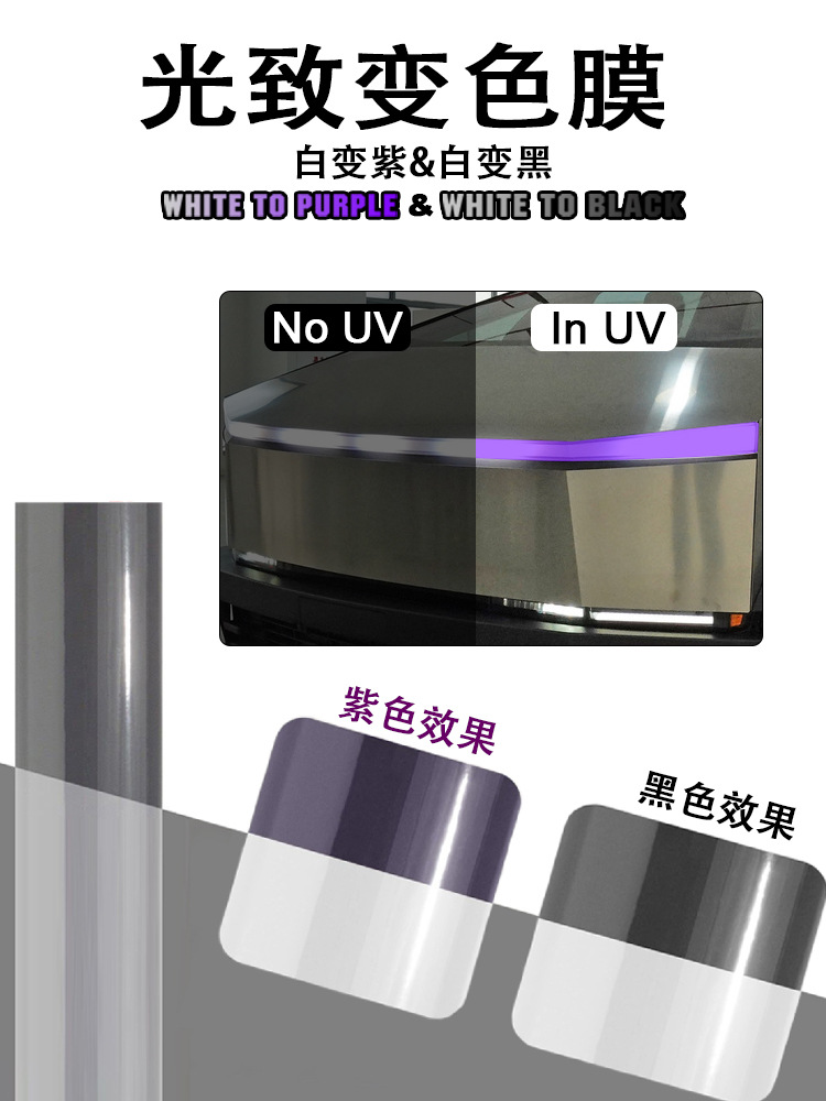 Эксклюзивная трансграничная поставка обновленной пленки TPU для Model Y 2025 года — прозрачная, меняющая цвет от белого до фиолетового и от белого до светлого.