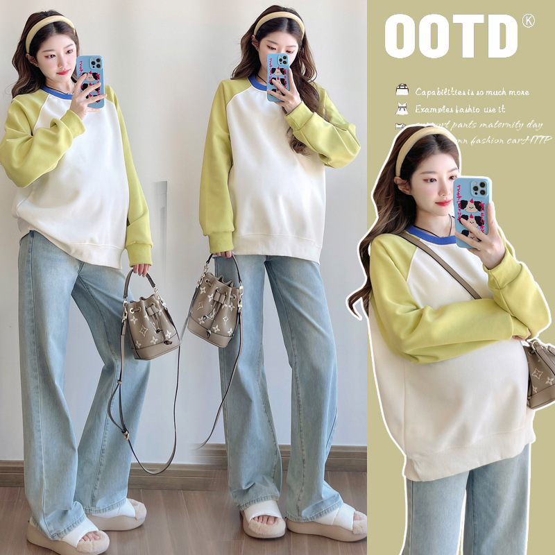 Одежда для беременных мода 2025 новый костюм для беременных, сшитые топы, весенняя мода, свободный, дикий с длинными рукавами