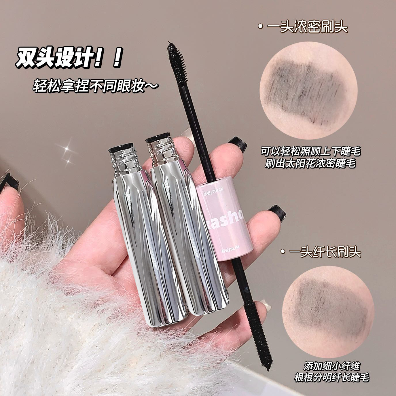 Толстая и длинная двусторонняя тушь Kakashow
